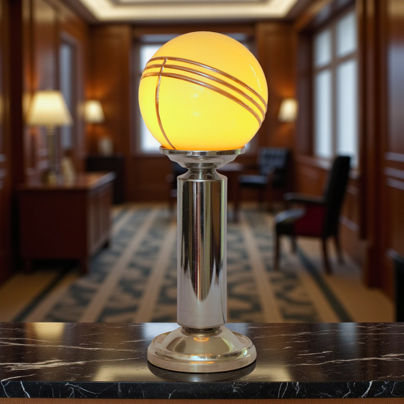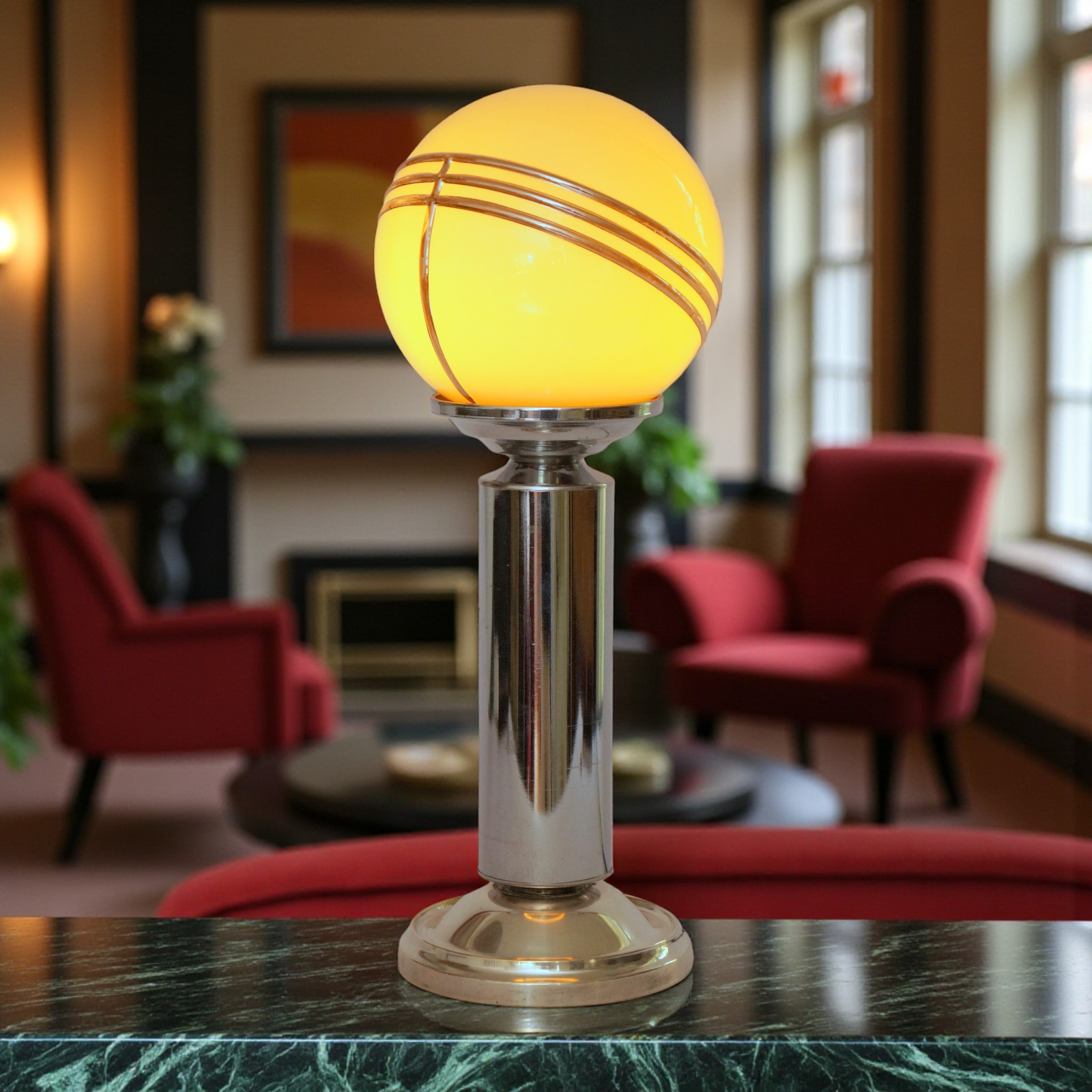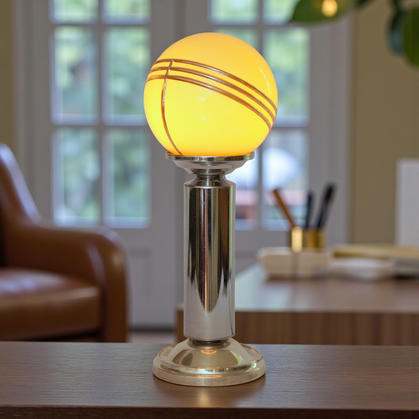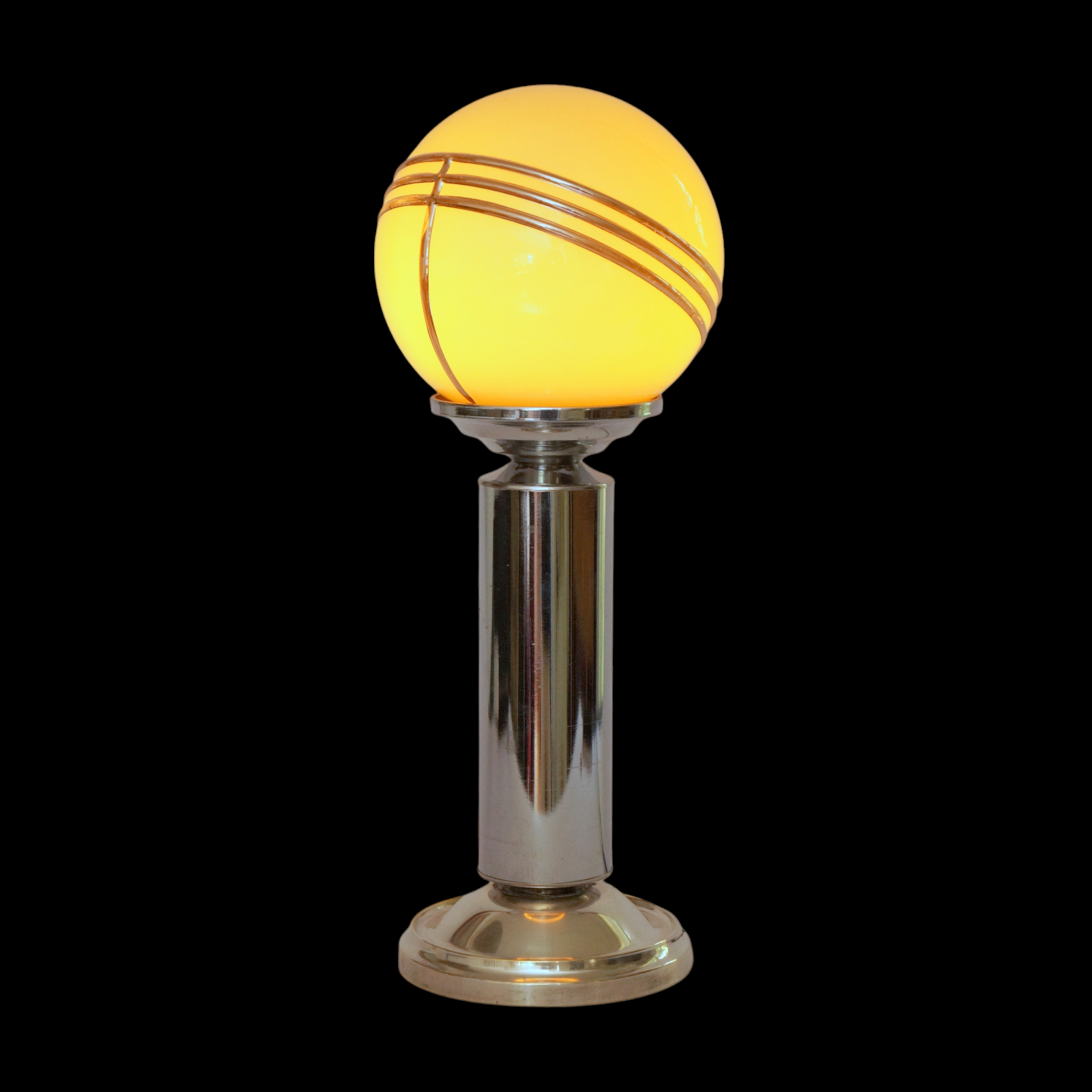 Verre d'opale Art deco tres rare, env. 1930, couleur creme. Les bandes d'argent sont partiellement frottees - voir des photos detaillees.