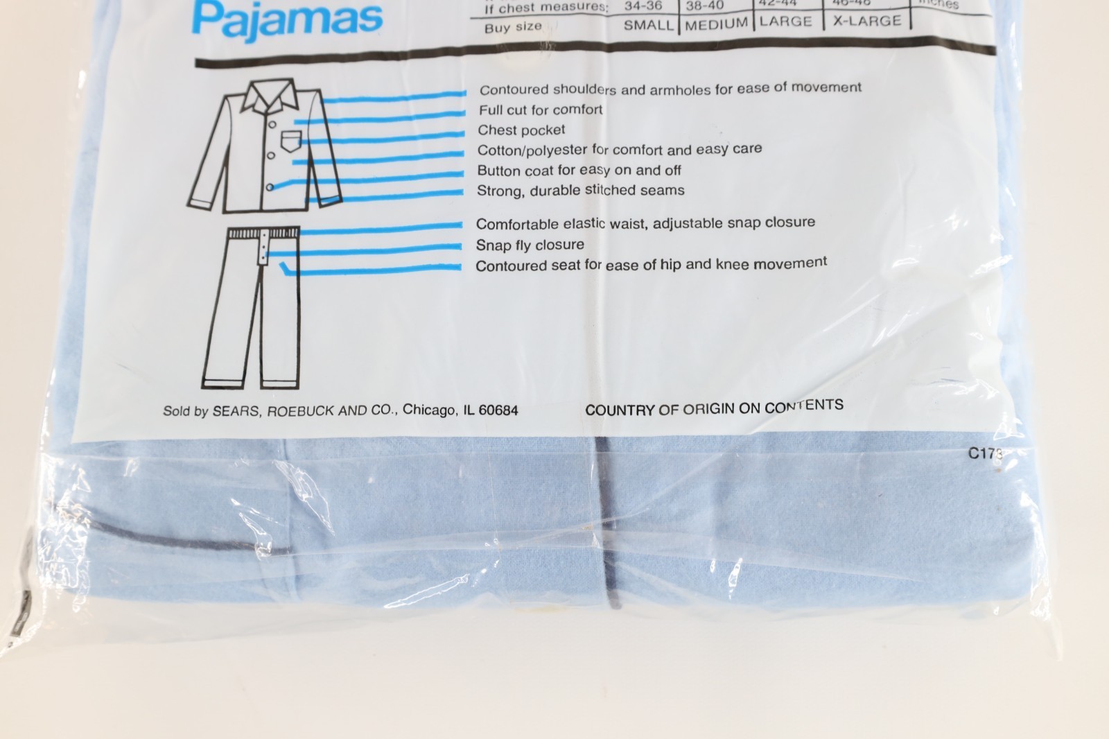 Deadstock Vtg 70s 80s Streetwear Mens Medium 2 Piece Flannel Pajamas PJs Blue