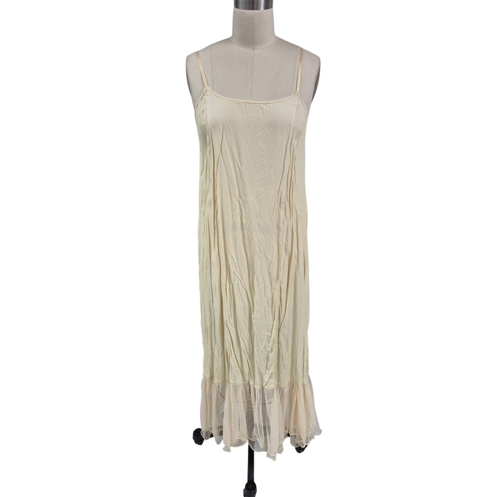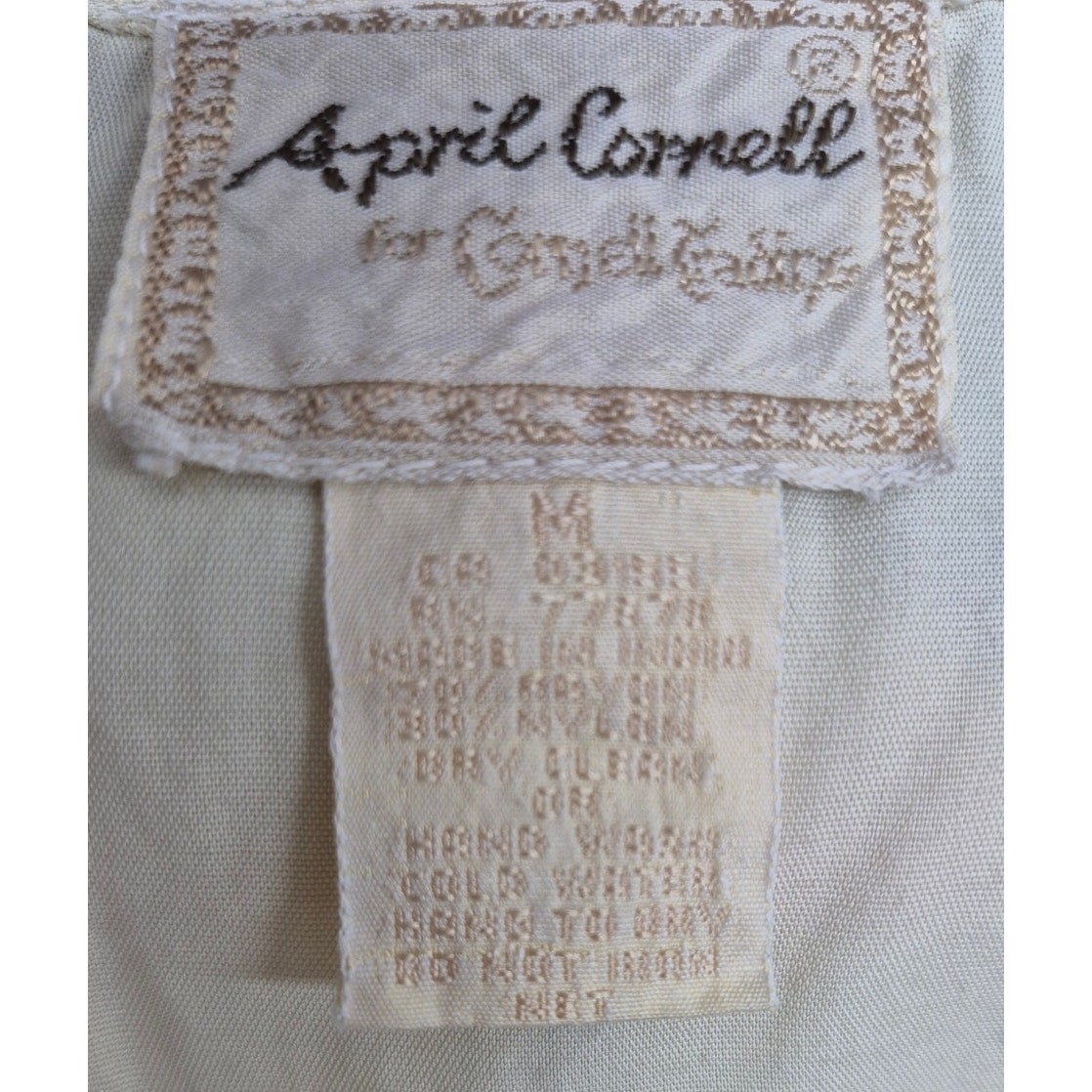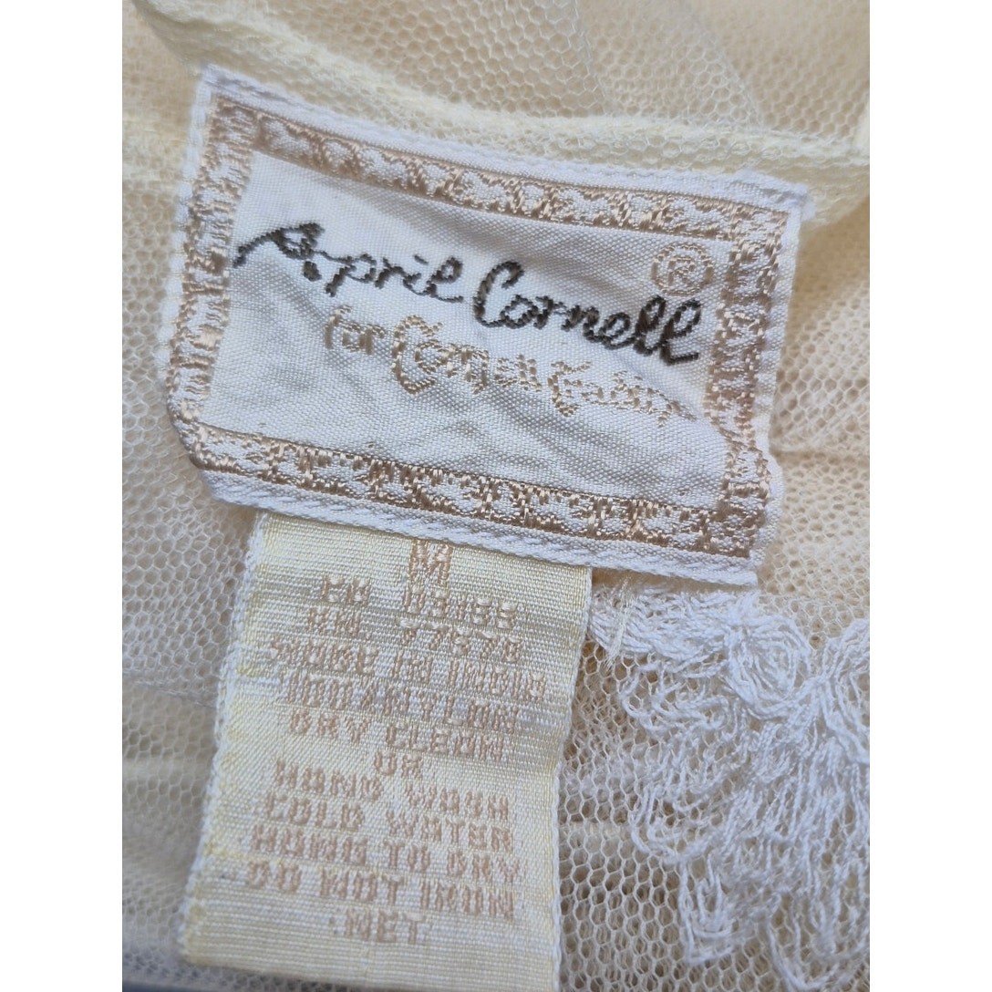 Ethereal 90s April Cornell "Hopeless Romantic" Creamy Maxi Dress. This enchanting piece features a beautifully flowing design with a delicate sheer mesh overlay that adds a dreamy, romantic touch. The creamy hue is perfect for a soft, messy coquette look, ideal for garden parties, summer events, or channeling a cottagecore or bohemian aesthetic. Its comfortable maxi length and elegant layering make it a versatile addition to your wardrobe. Separate Underslip with adjustable straps. Perfect for those who adore vintage-inspired romance and effortless charm. Size Medium. Excellent condition.