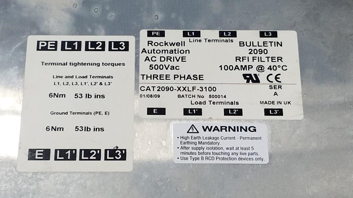 Allen Bradley 2090-XXLF-3100 SER.A RFI Filter 3-Phase, AC 500V 100A