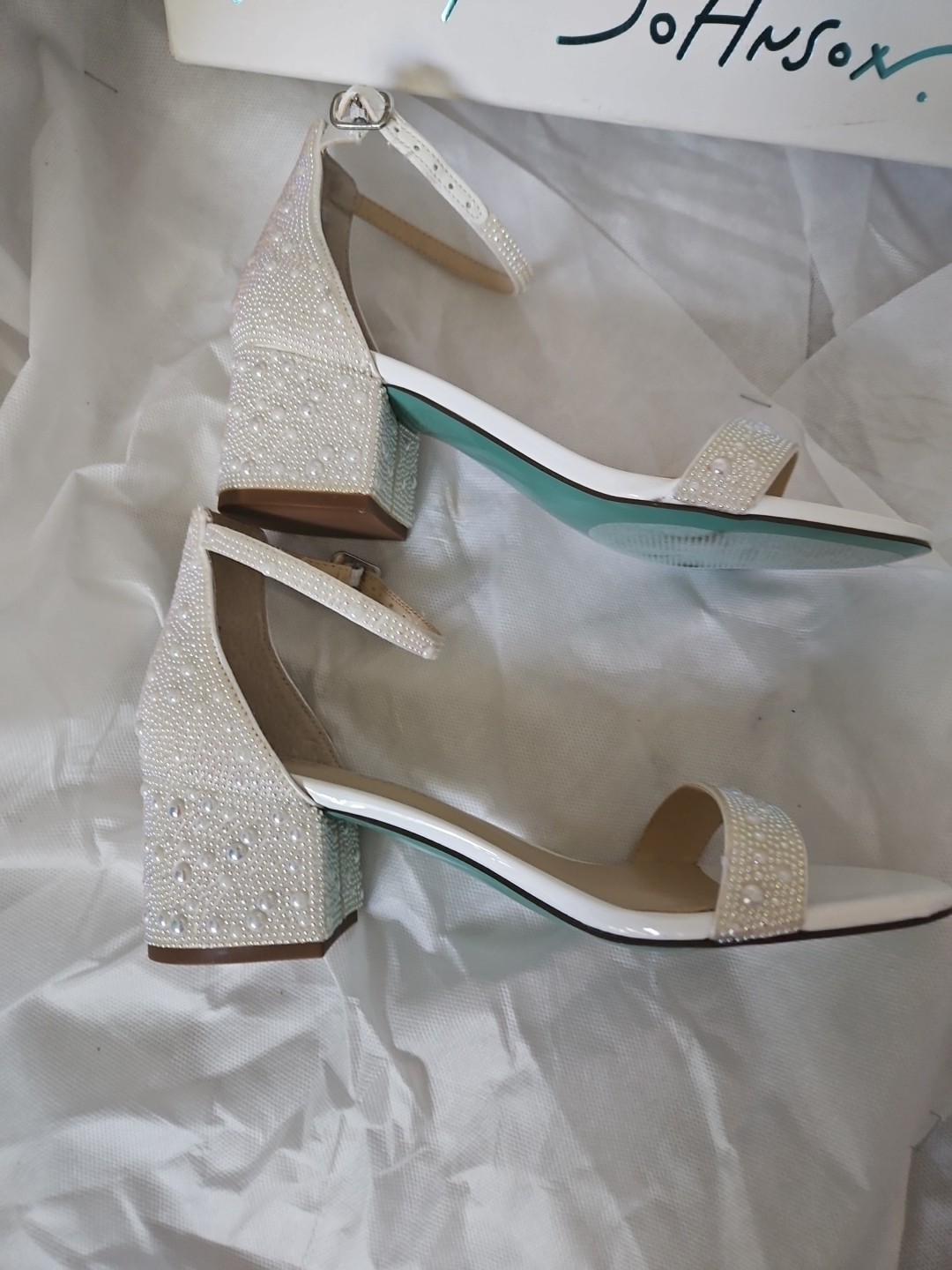 Blue by Betsey Johnson Women's Size 8M Mari Heeled Sandal Champagne White