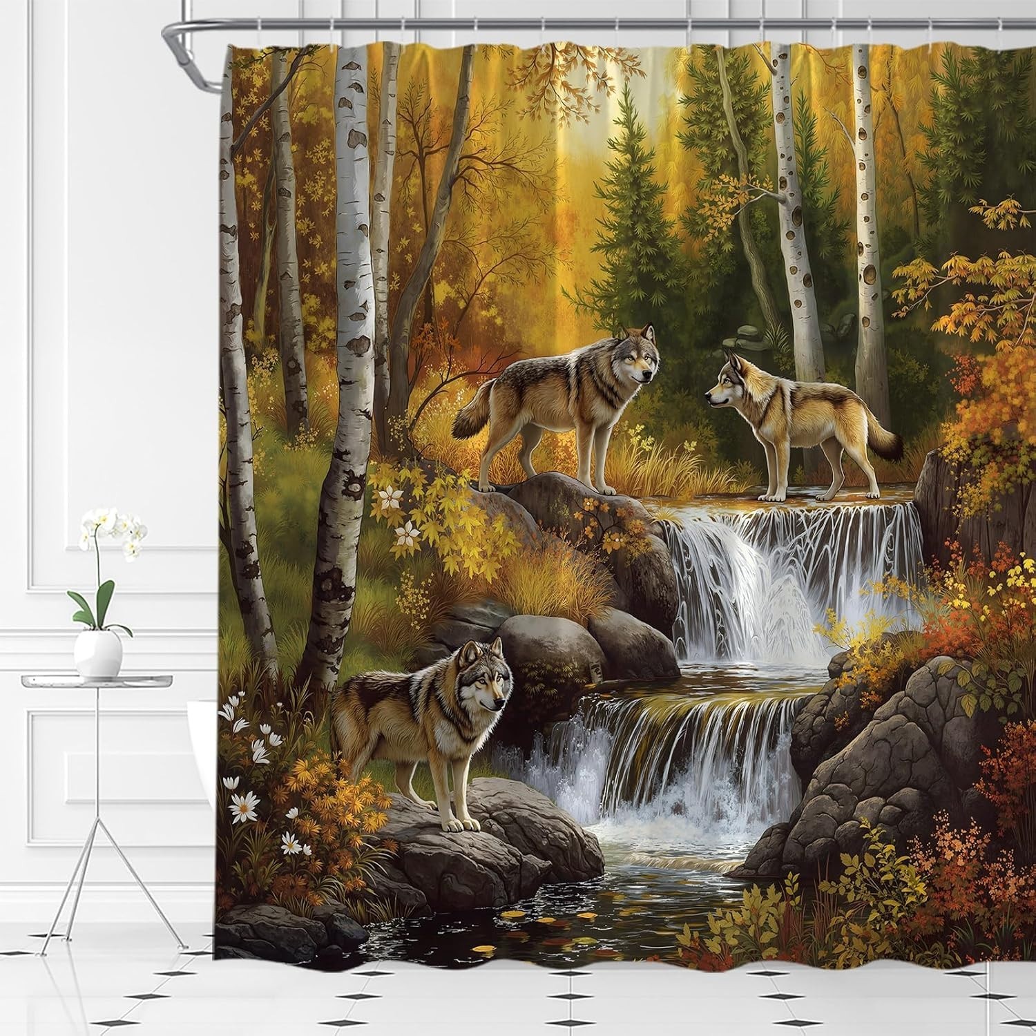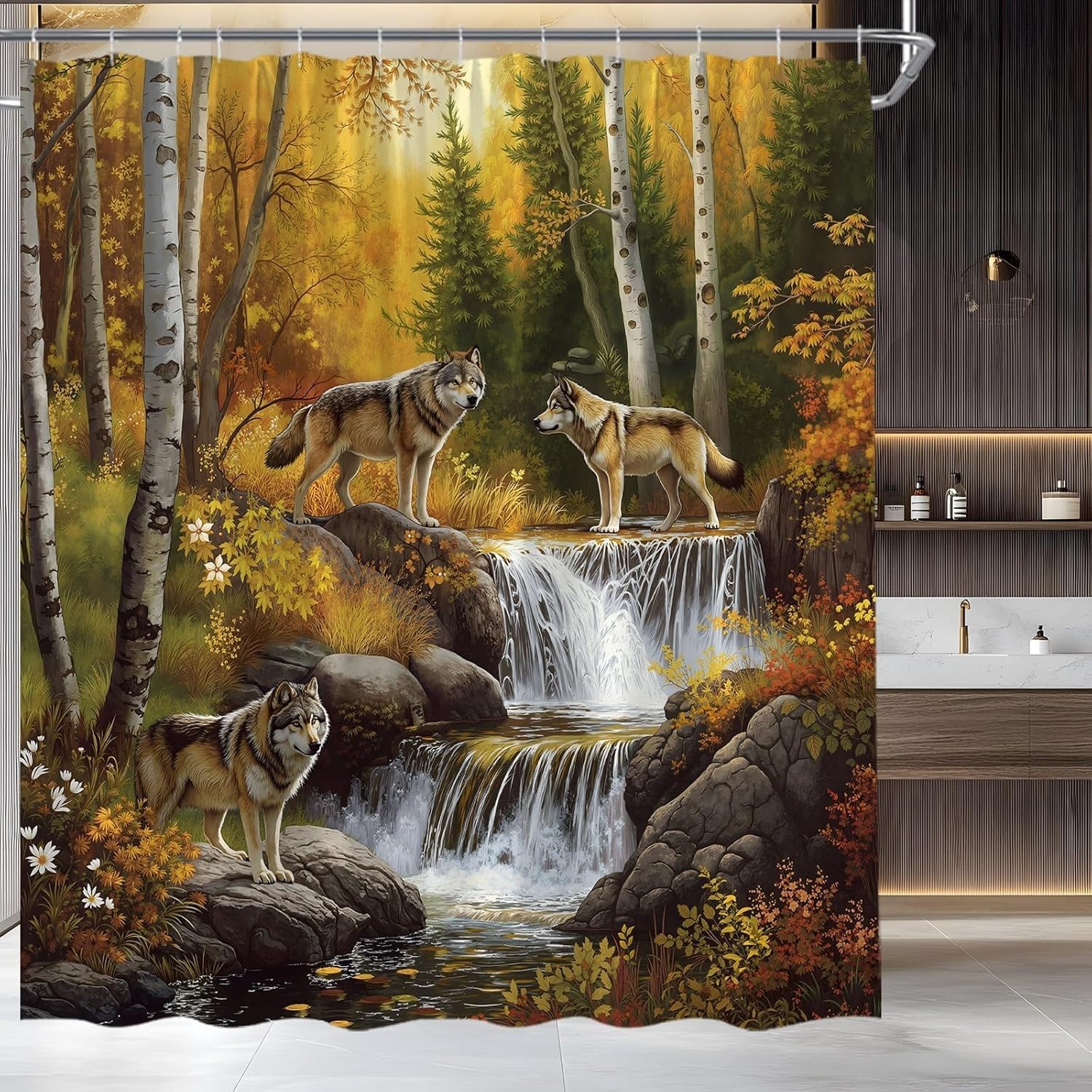 Cabin Lodge Wolves Forestry Stream Fabric and 50 similar items
