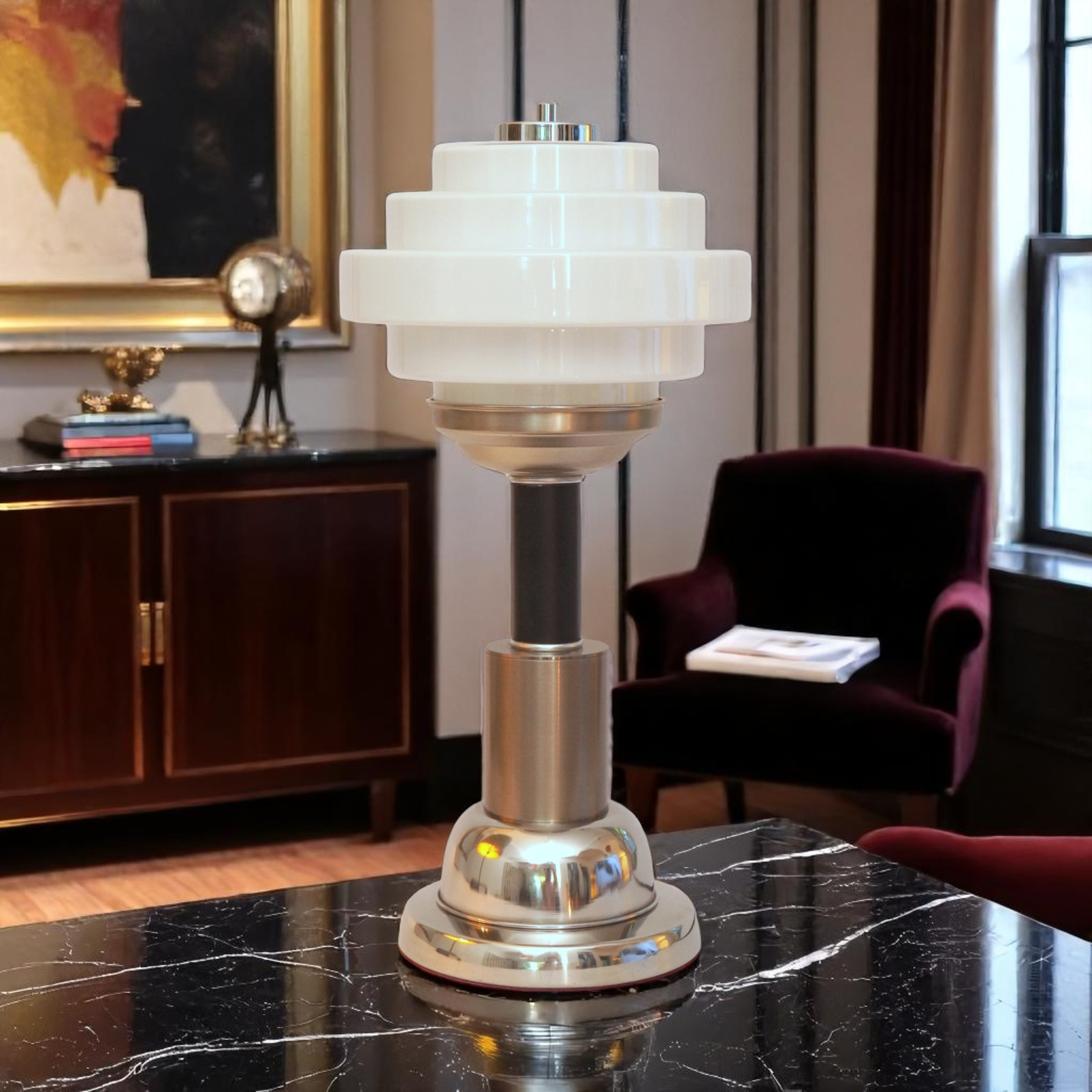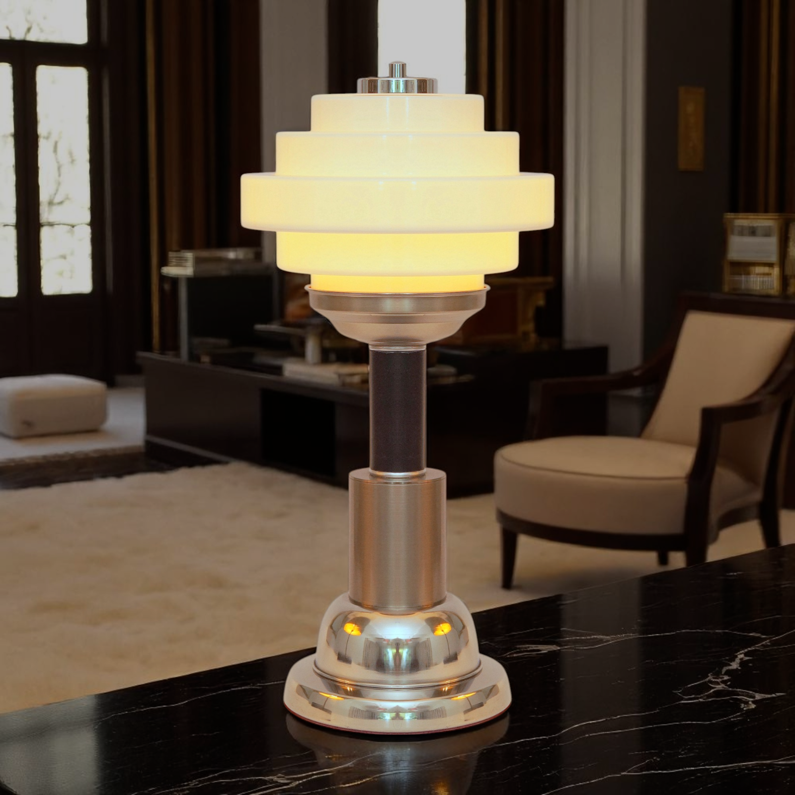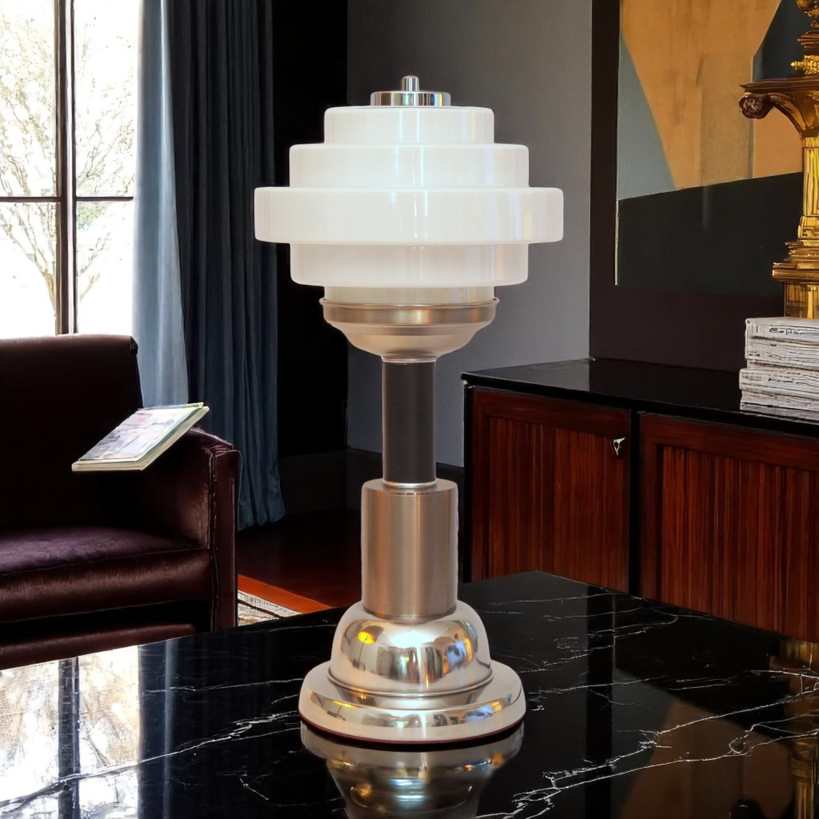 Lampe de table de conception art deco / bauhaus unique "etape avant".