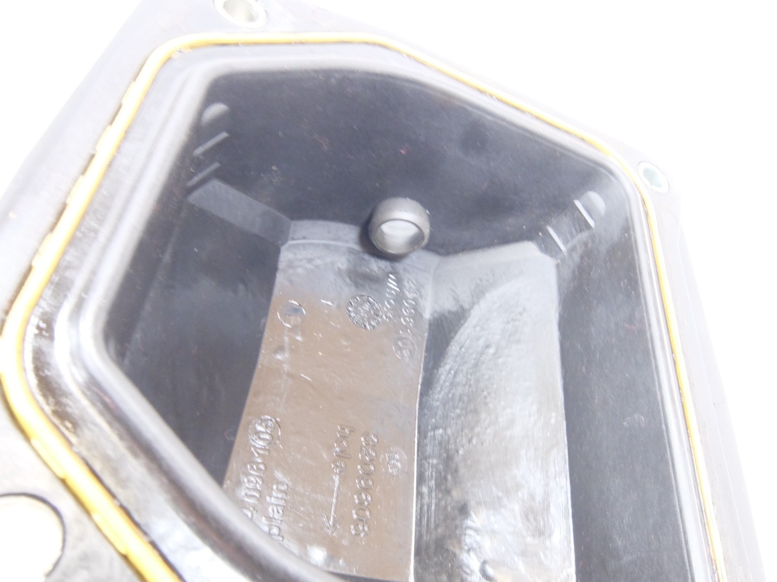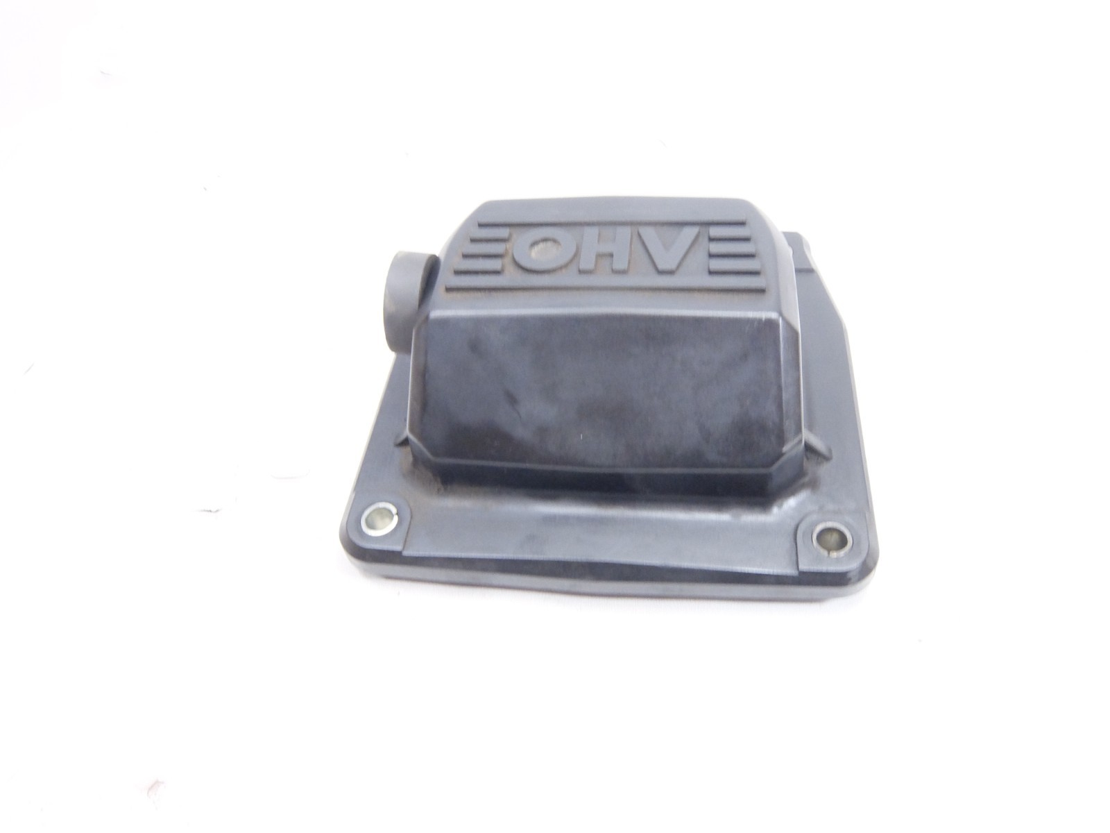 This is a used genuine valve vover that was removed from the mower below. This cover has the hole in it for the breather. The used gasket and grommet are included.