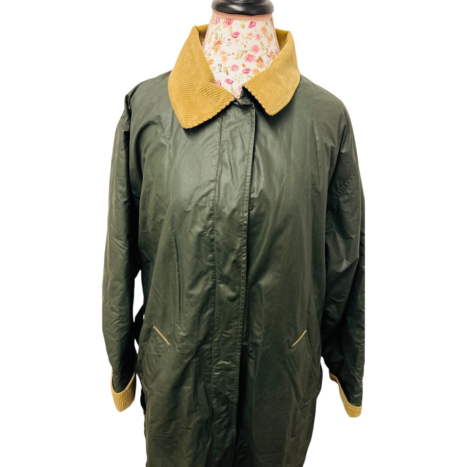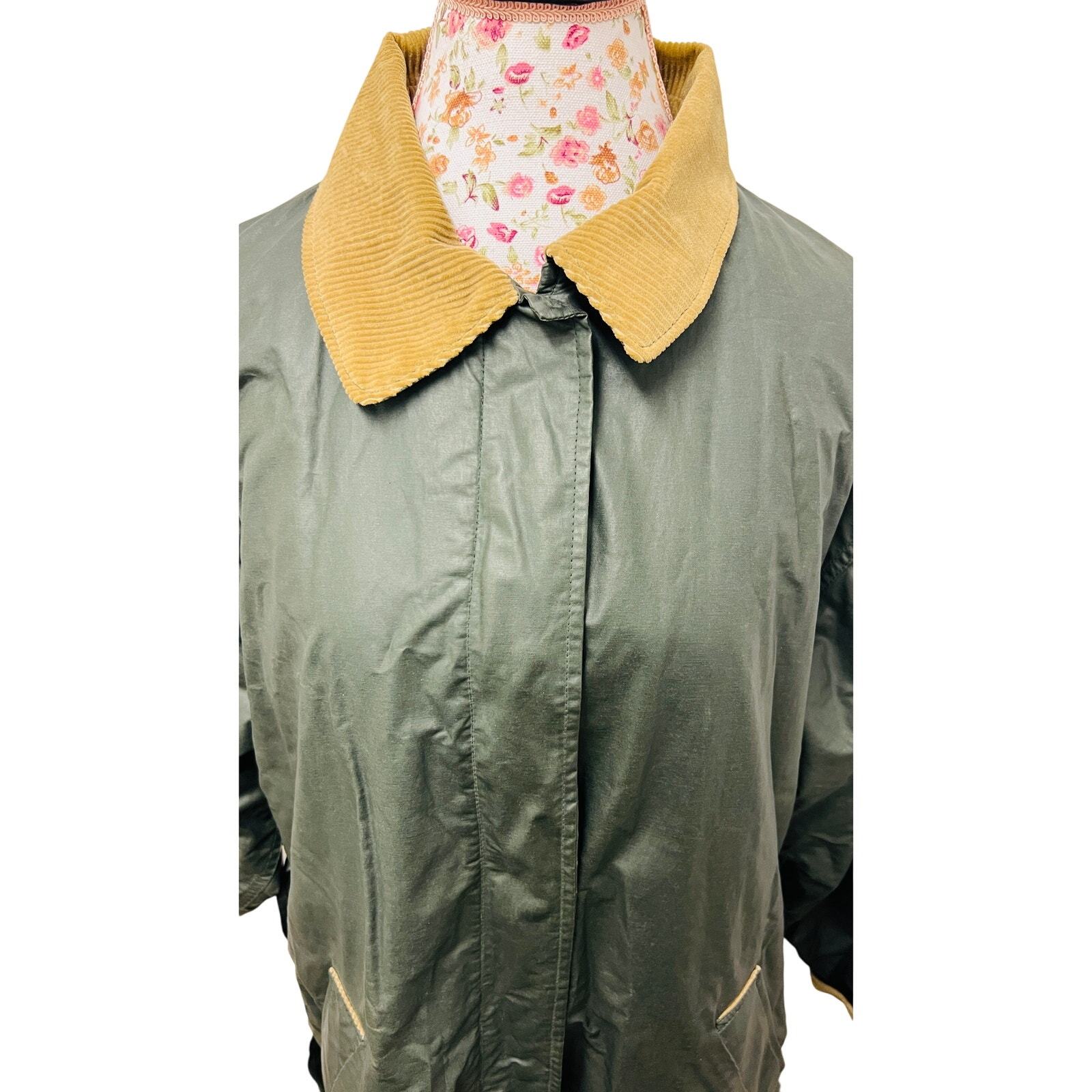 VTG Woolrich Woman M Green Barn Jacket Coat Flannel Trench Corduroy Heritage