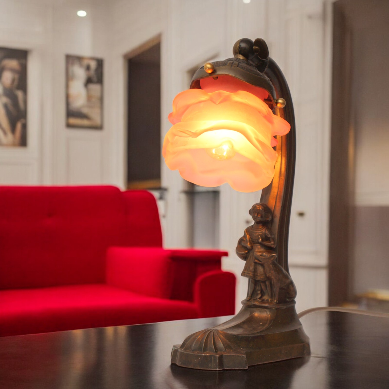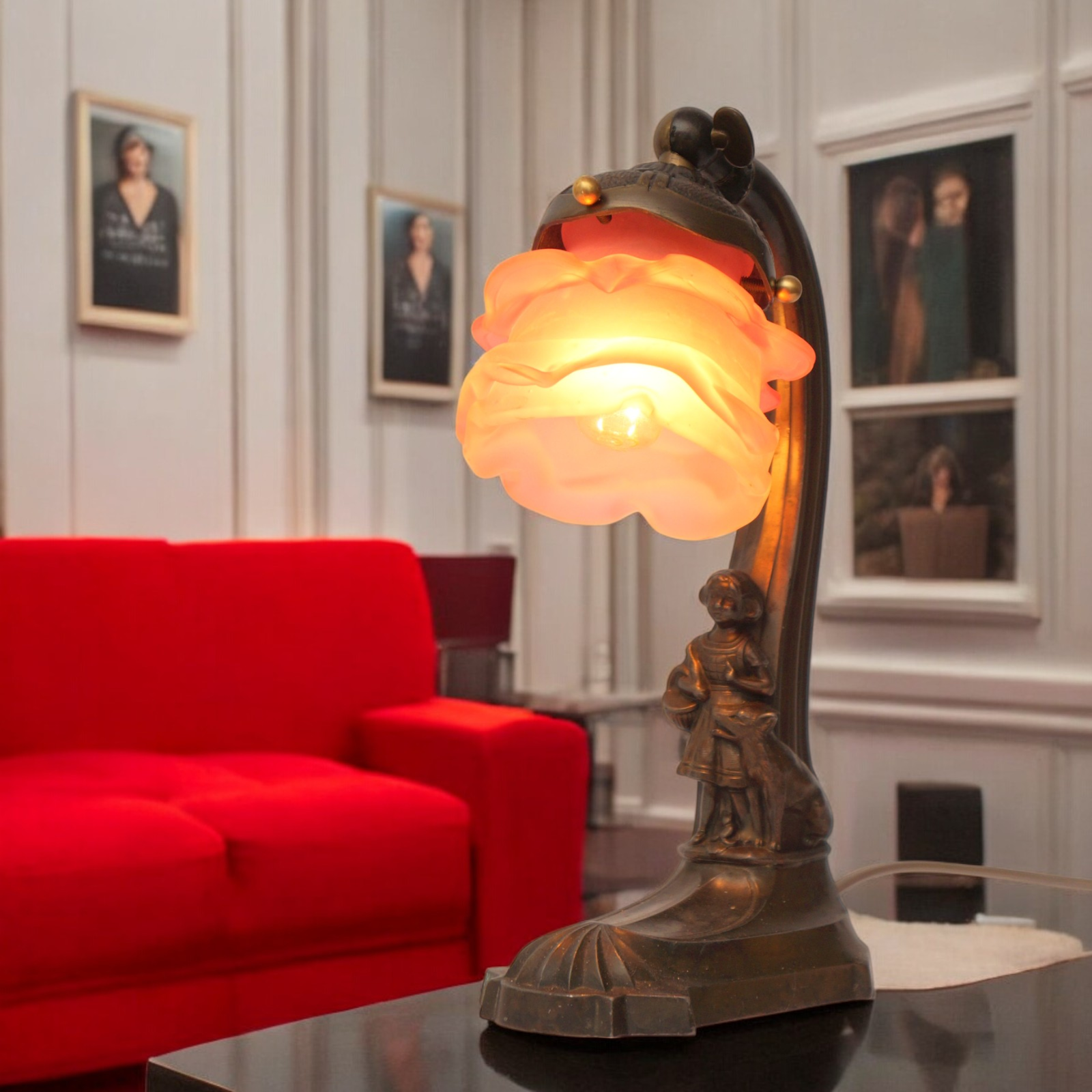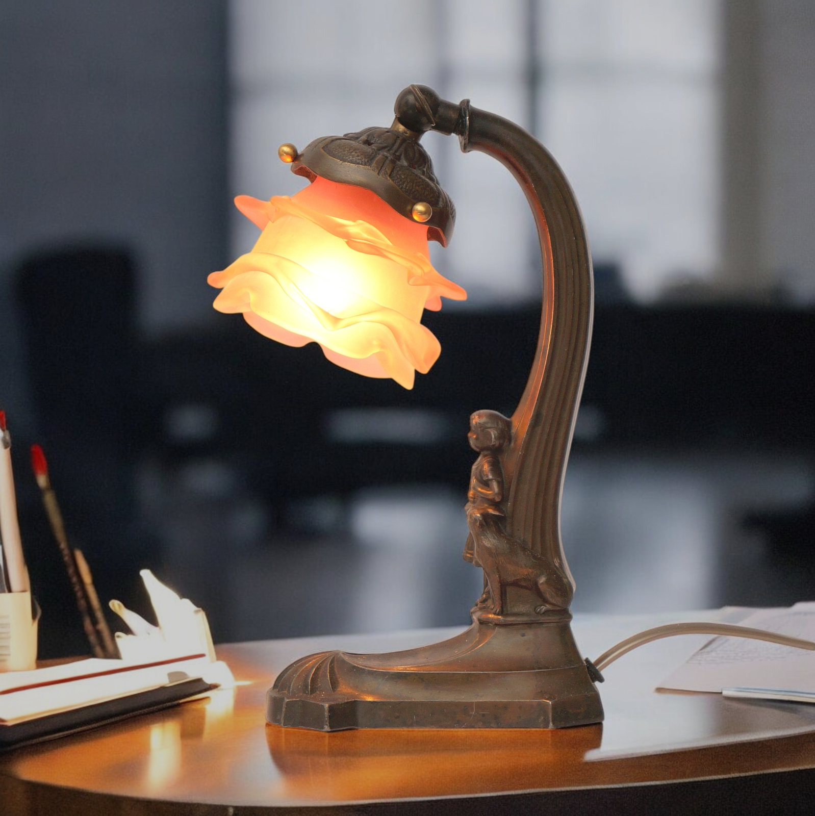 Beautiful original Art Nouveau bedside table/piano lamp "Maiden Dog".