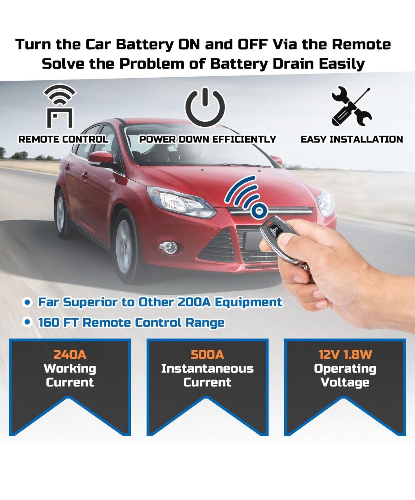 Remote Battery Disconnect Switch 12v, 240A, Upgrade Smart Voltage Car Kill Switch Anti-Theft, Prevent Battery Drain, Remote Battery Kill Switch for Car, Truck, RV (Flat Installation)