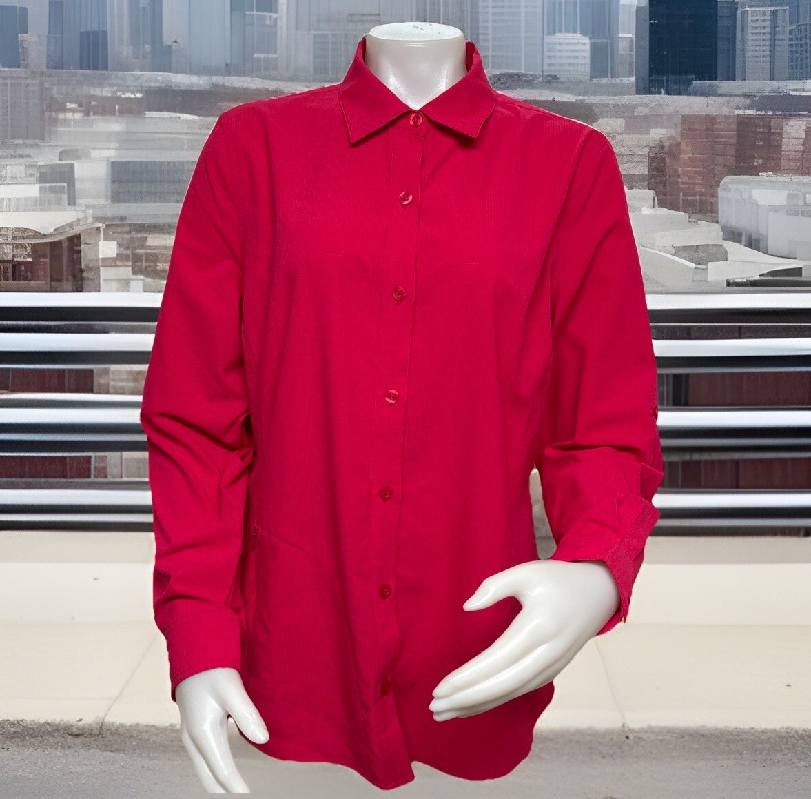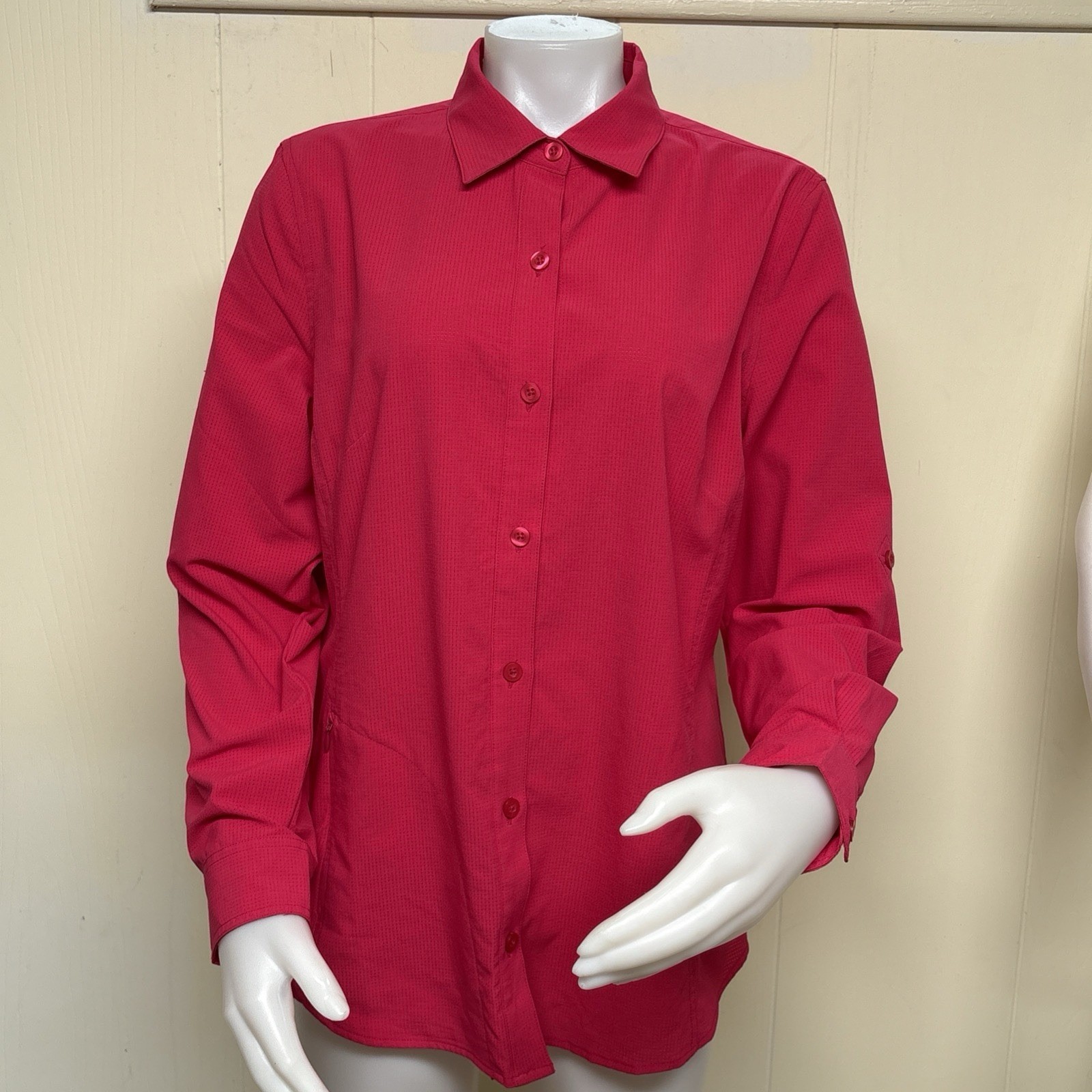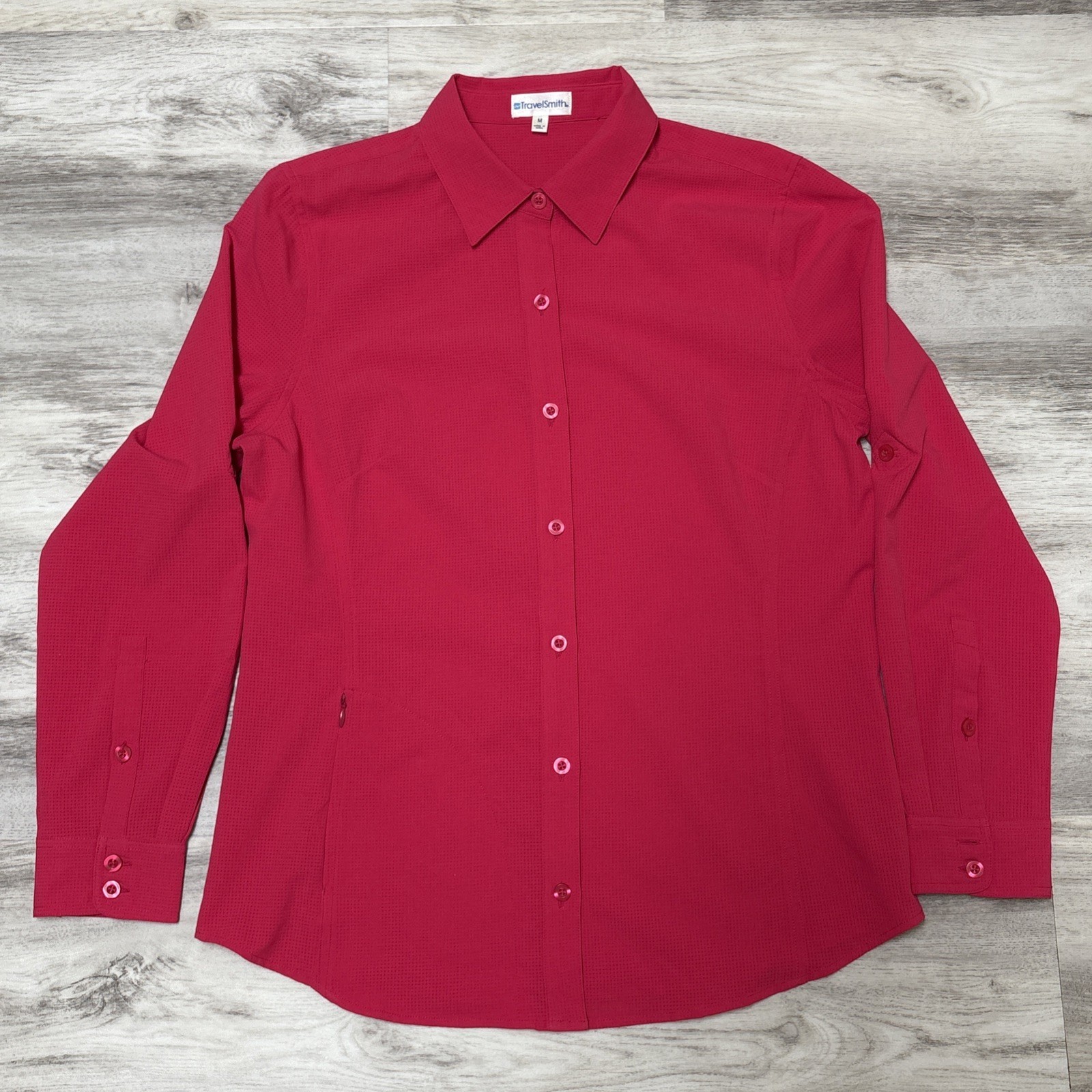 TravelSmith Button Up Top Womens M Pink Collared Shirt Long Sleeve Hidden Pocket