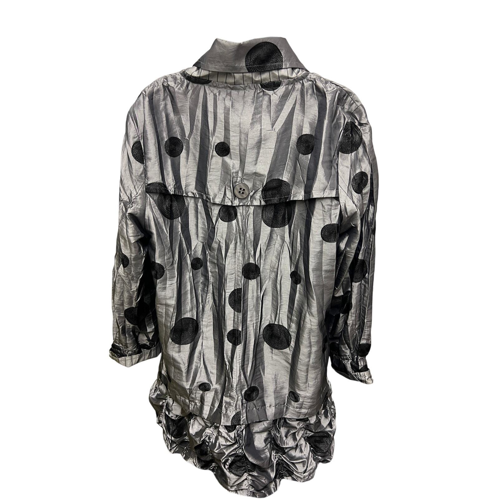 This avant-garde metallic polka dot ruffle coat is a unique statement piece that captures the essence of the 80s, 90s, and Y2K eras.