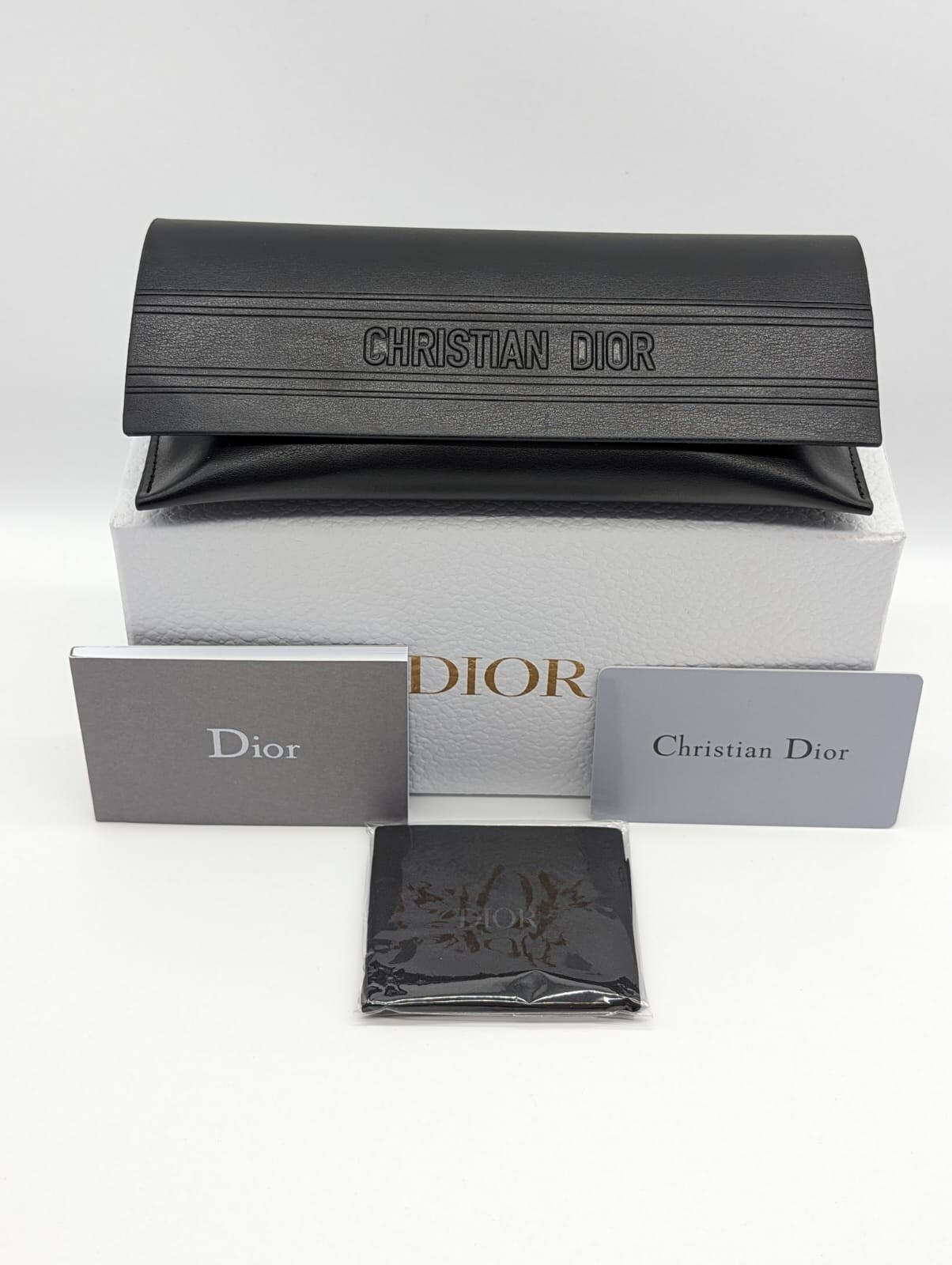 Dior Sunglasses are supplied with the case, box, cleaning cloth, and manufacturer information.