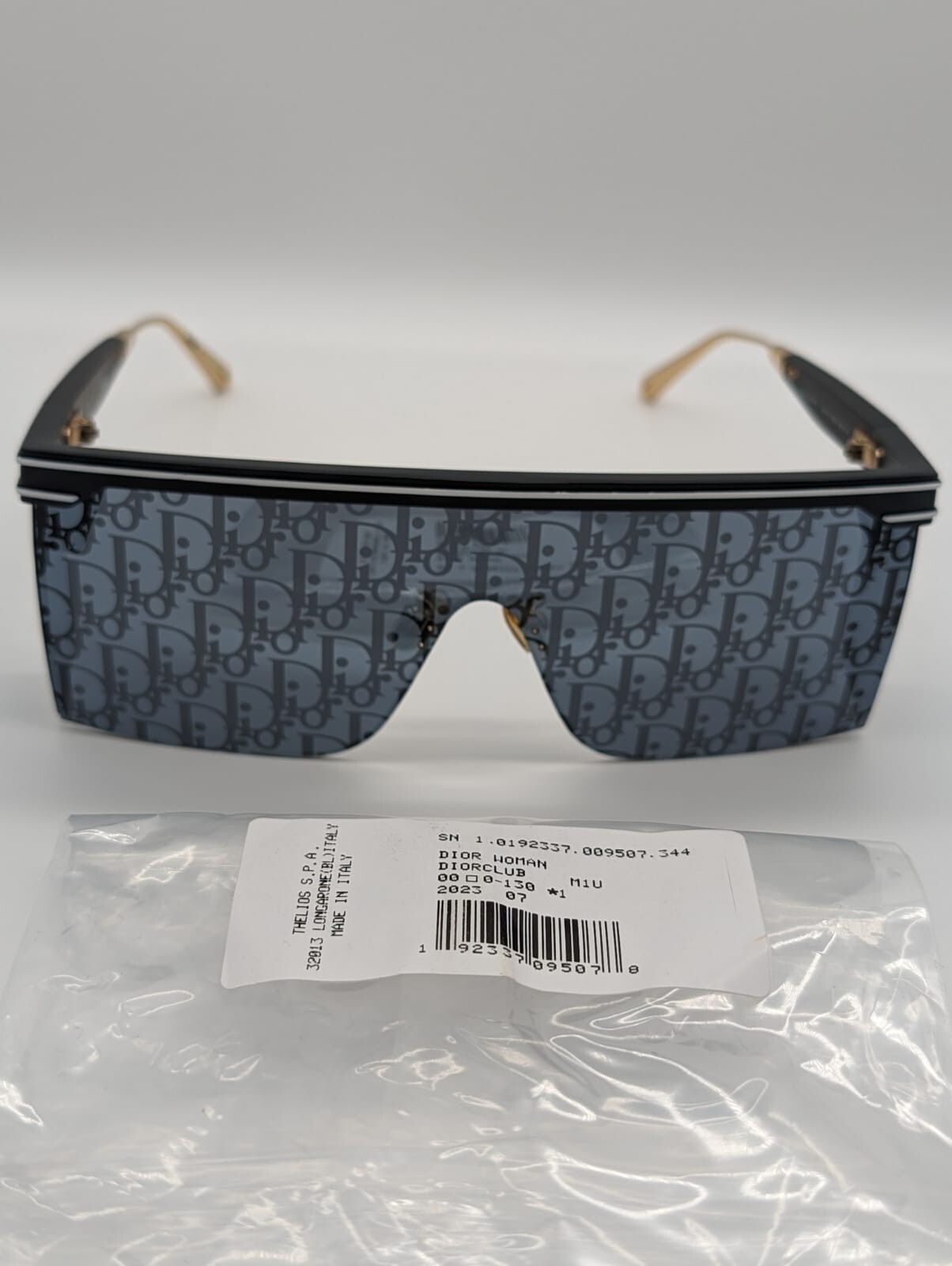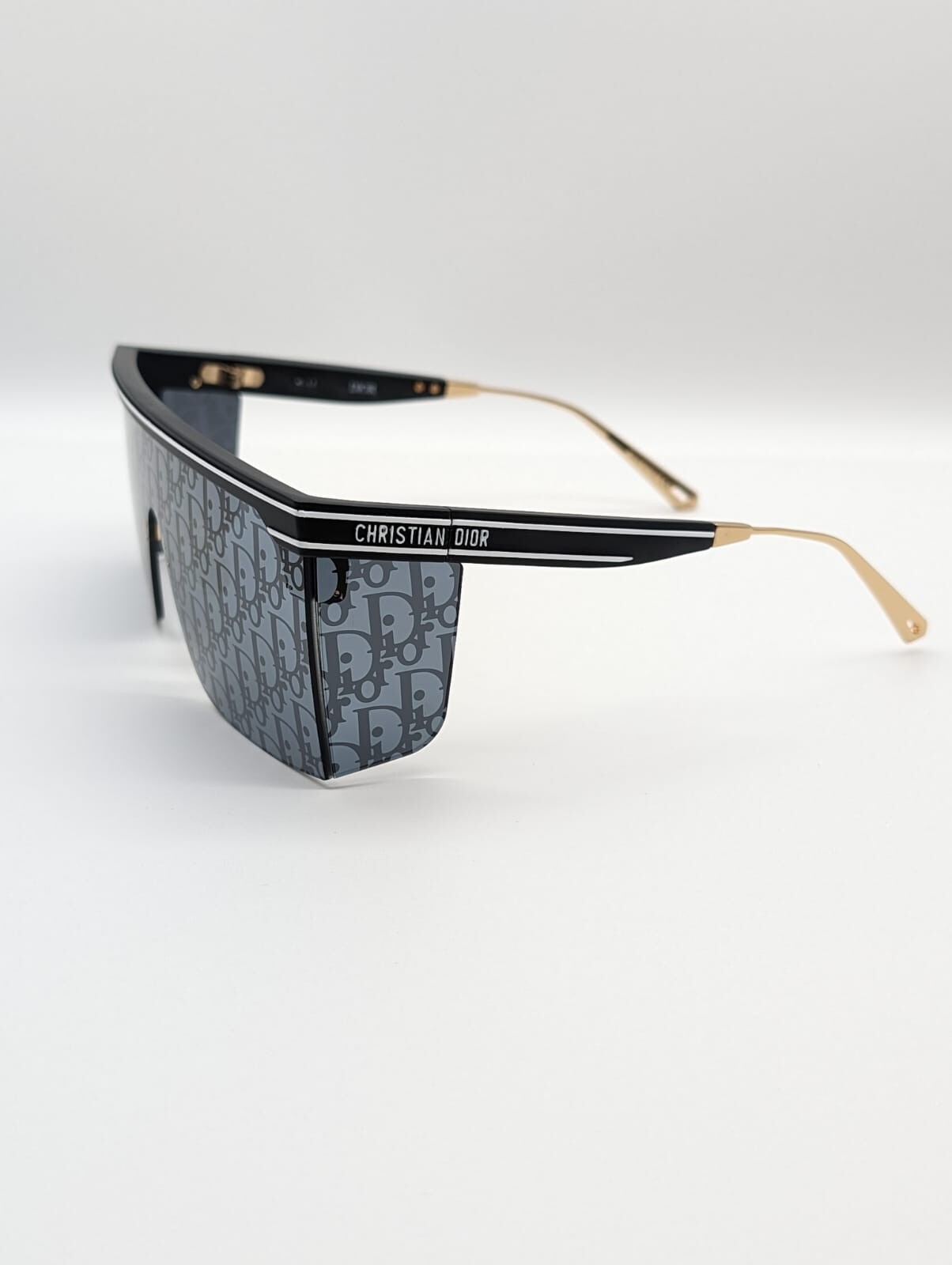 Christian Dior DiorClub M1U Black & Gold Sunglasses w/ Blue Logo Lens –Brand New