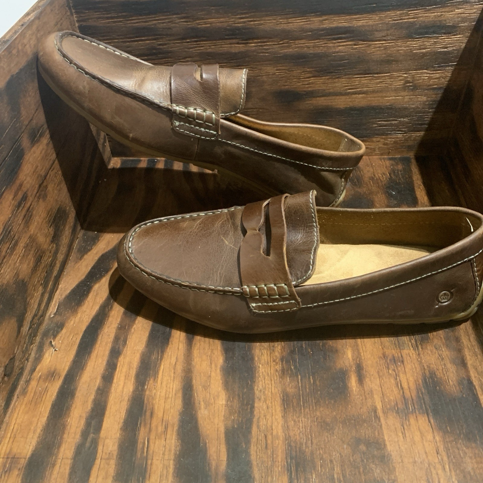 Born Mens Penny Loafer Shoes Brown Moc Toe Driving Shoe Leather Slip On 8 M