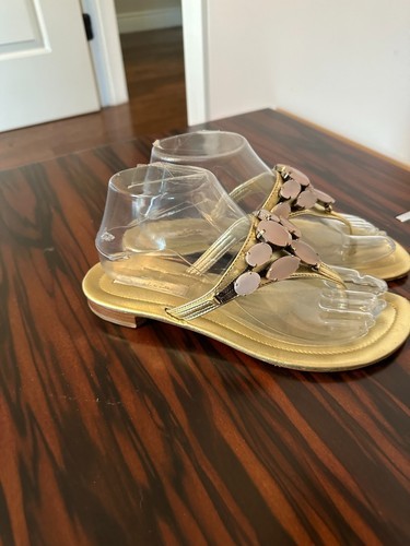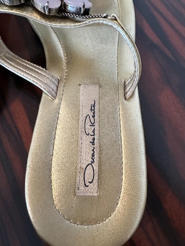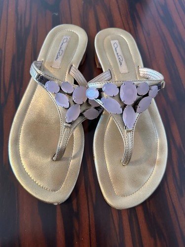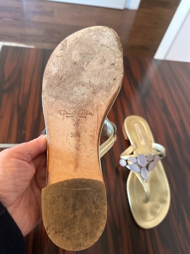 Pre-owned OSCAR de La RENTA Metallic Pewter Leather Thongs SZ 8.5