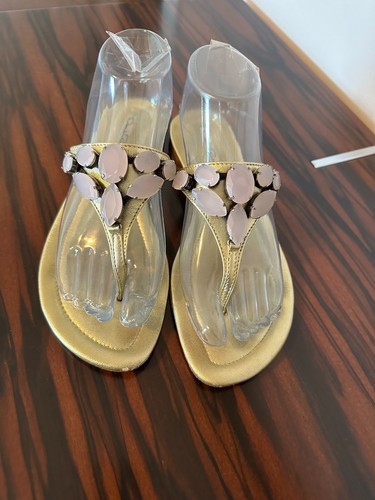 front of thongs embellished with resin "hem stones" lavender color