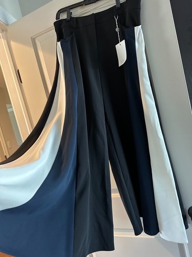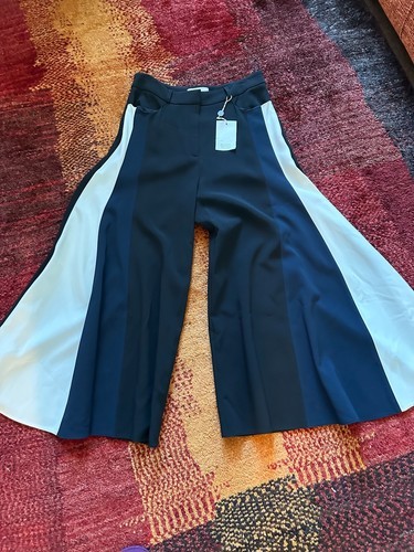 NWT PETER PILOTTO Black Trouser with White Navy Inserts Very Wide Leg SZ 10