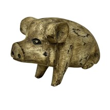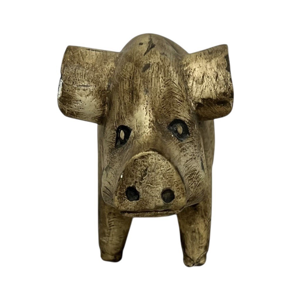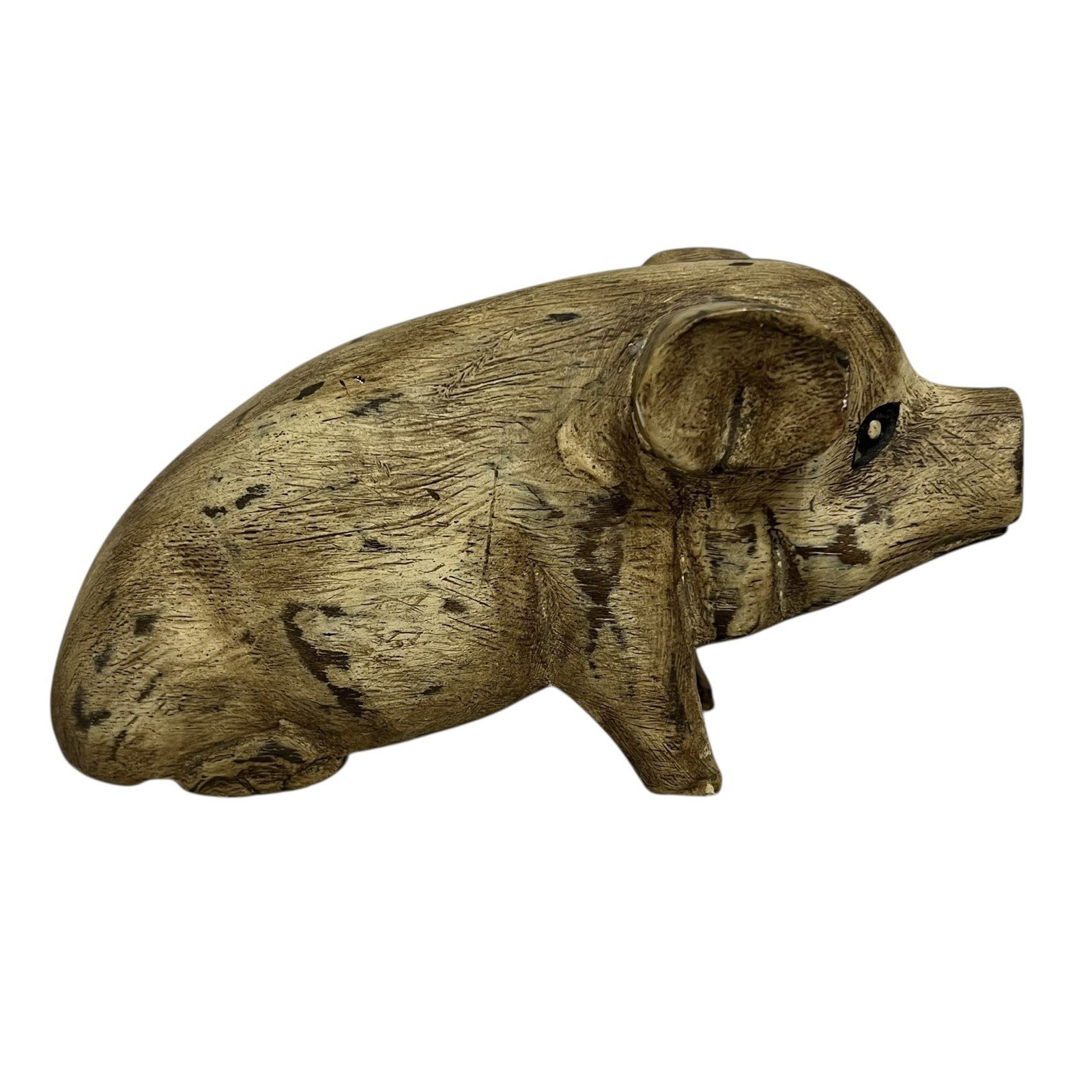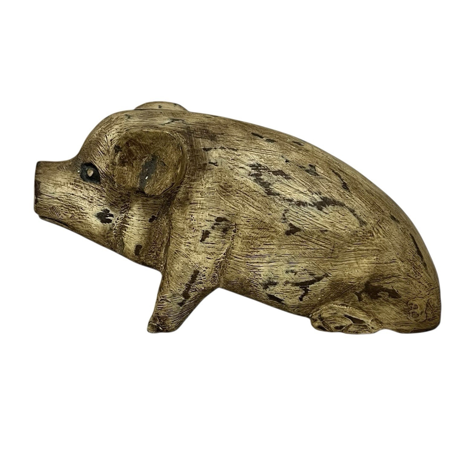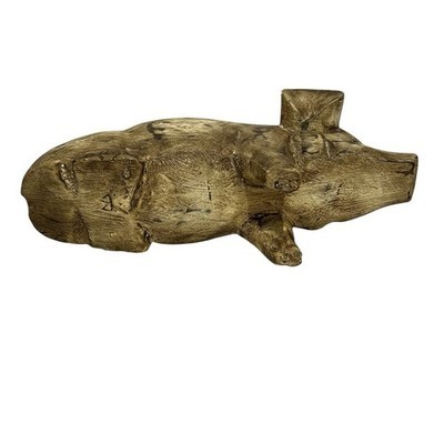 Charming vintage pig figurine with a rustic hand-carved appearance. Although it looks like wood, this piece is actually made from ceramic, giving it a durable, lightweight feel. Features hand-painted details and a natural, distressed finish that adds farmhouse character and warmth.
