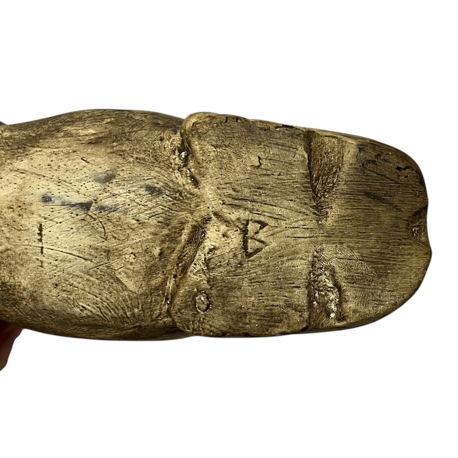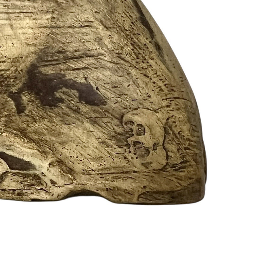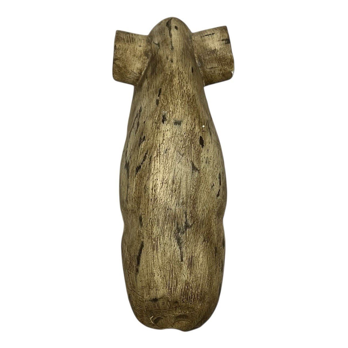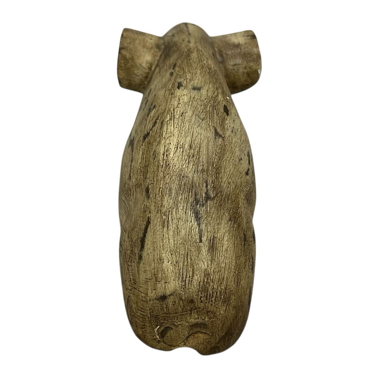 Charming vintage pig figurine with a rustic hand-carved appearance. Although it looks like wood, this piece is actually made from ceramic, giving it a durable, lightweight feel. Features hand-painted details and a natural, distressed finish that adds farmhouse character and warmth.