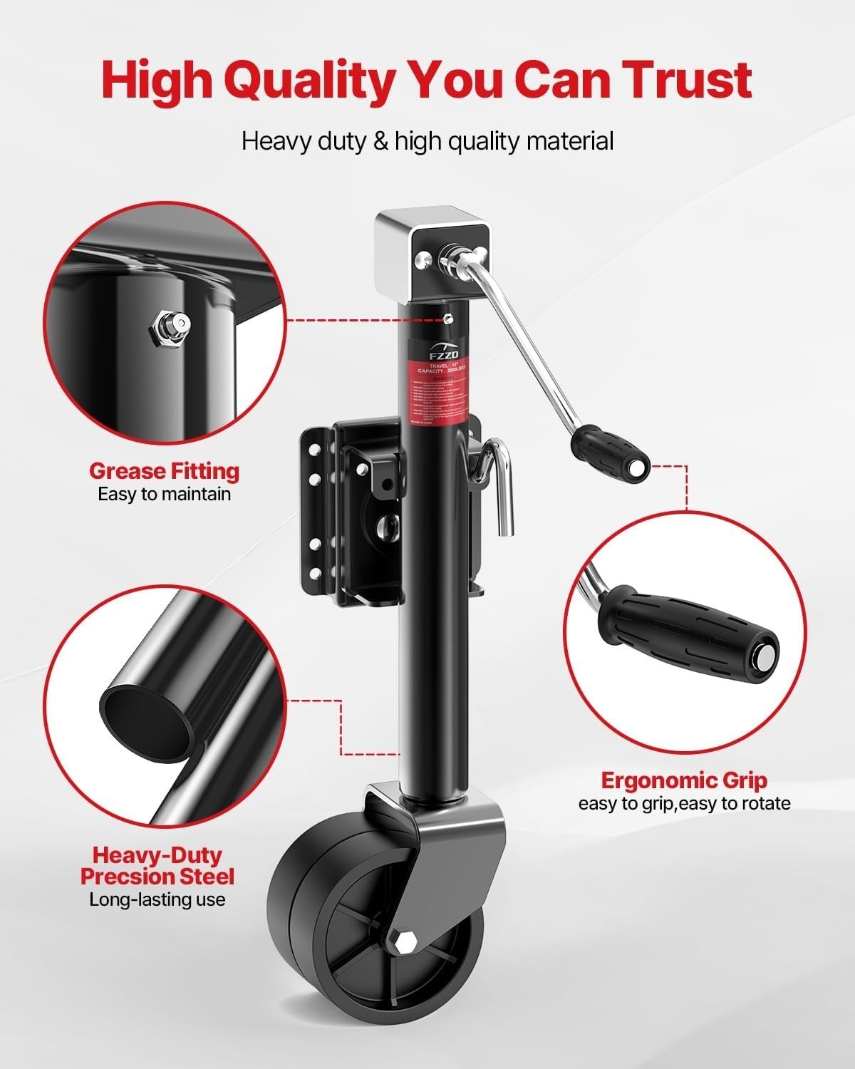 Universal Compatibility: Ideal for travel trailers, horse trailers, boat trailers, and utility trailers, this jack offers reliable strength and versatility for all your towing needs