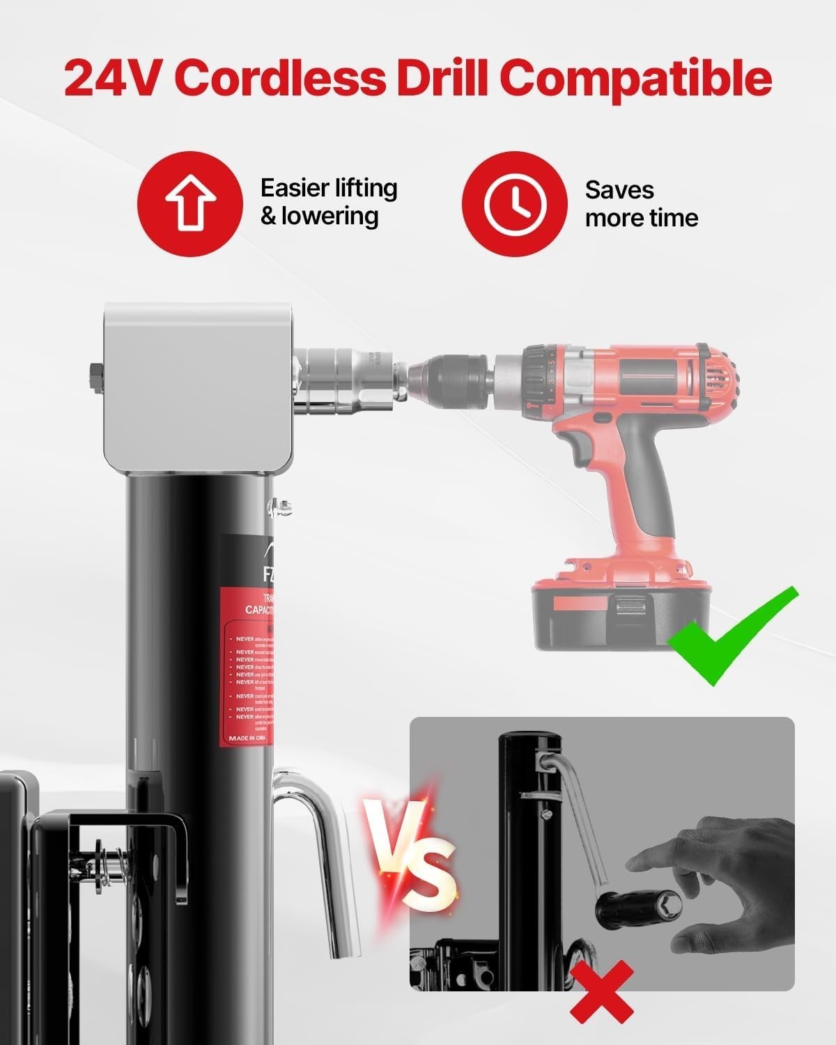 Power Manual Operation: Enjoy the flexibility of both power and manual operation. Effortlessly raise or lower your trailer using a power drill for speed or the manual crank for precision?perfect adapts to various environments?Contains Socket Set)