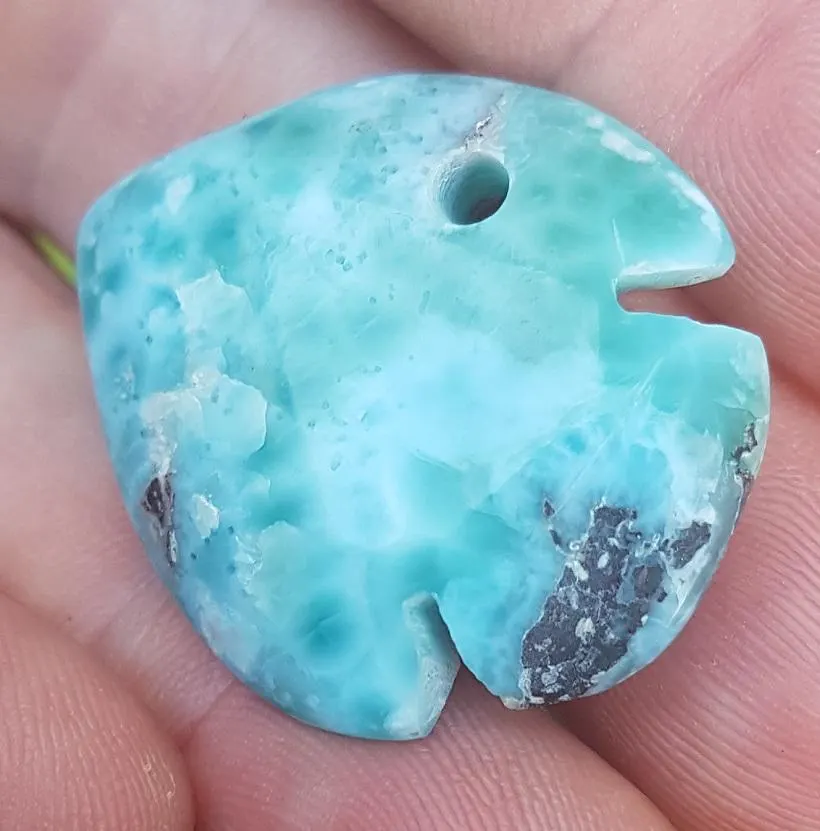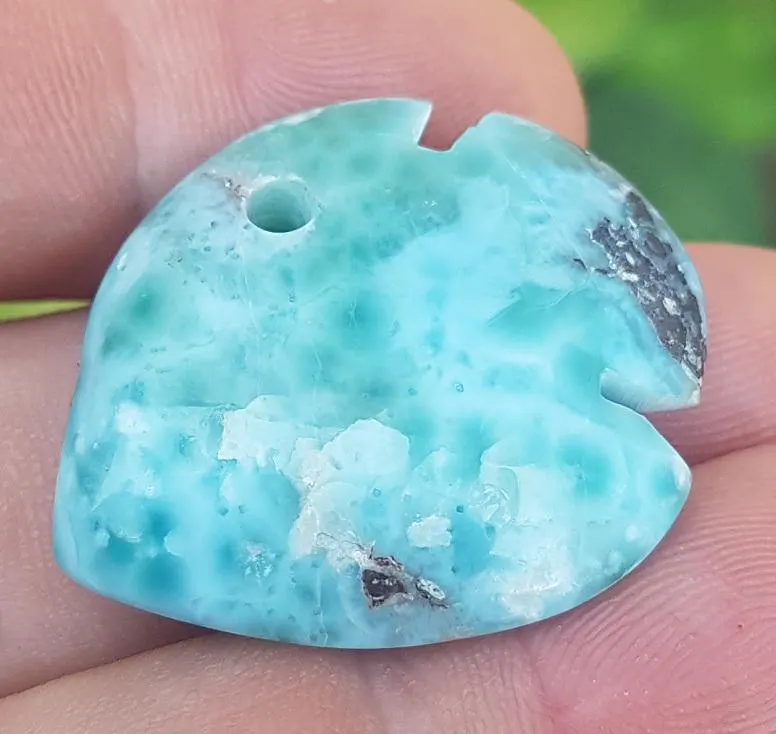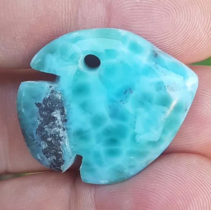 NATURAL blue larimar handcarved FISH Gemstone pendant 13 grams (j-20)