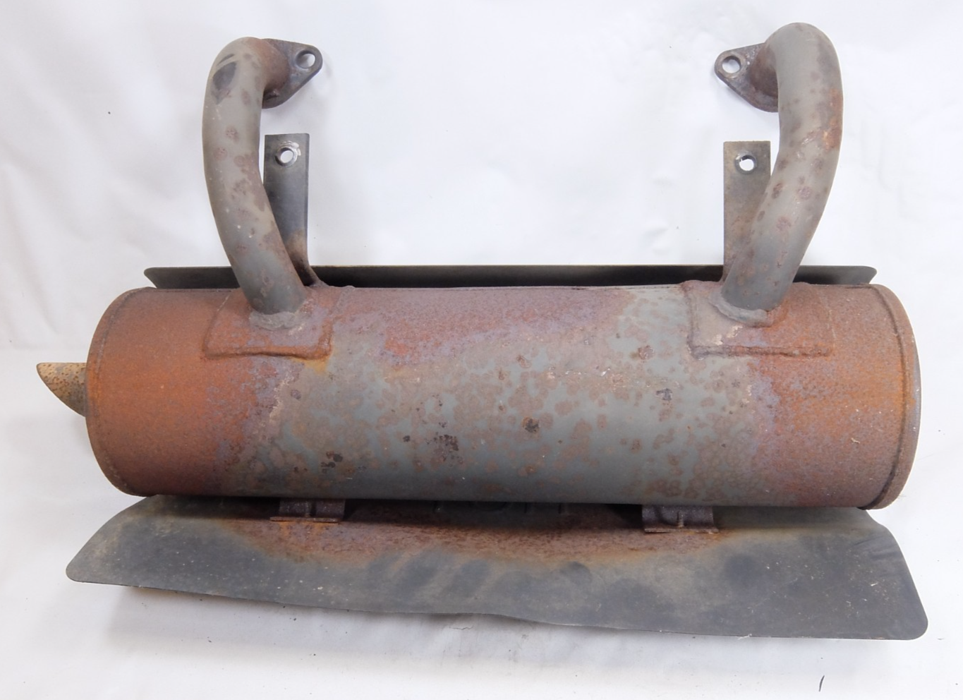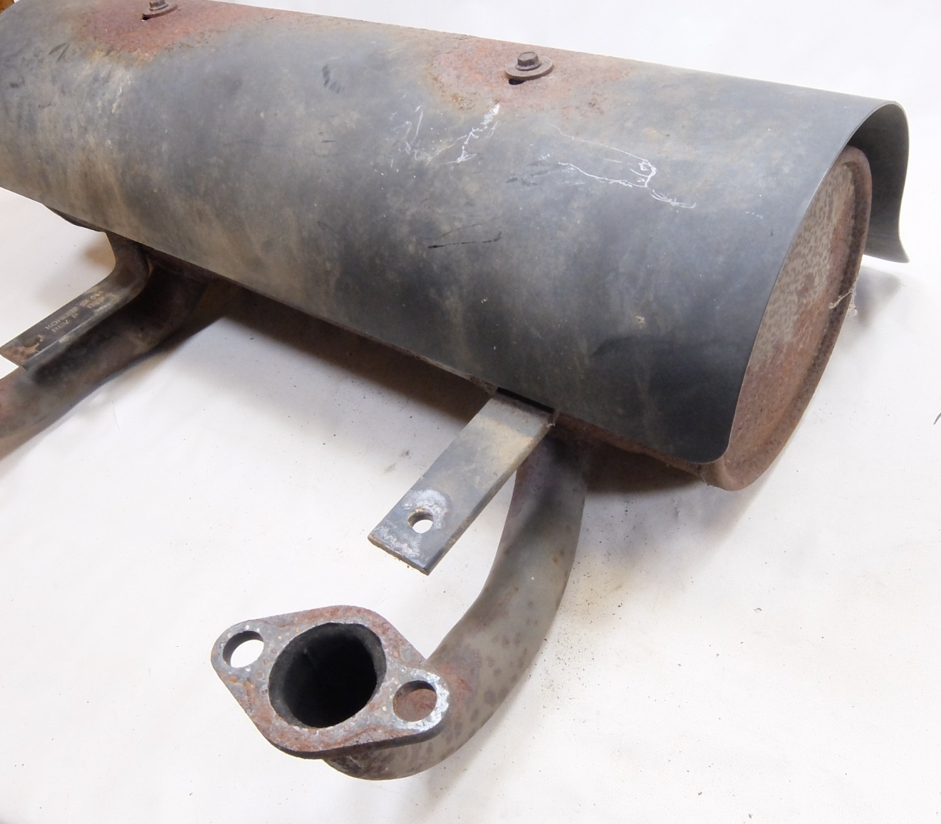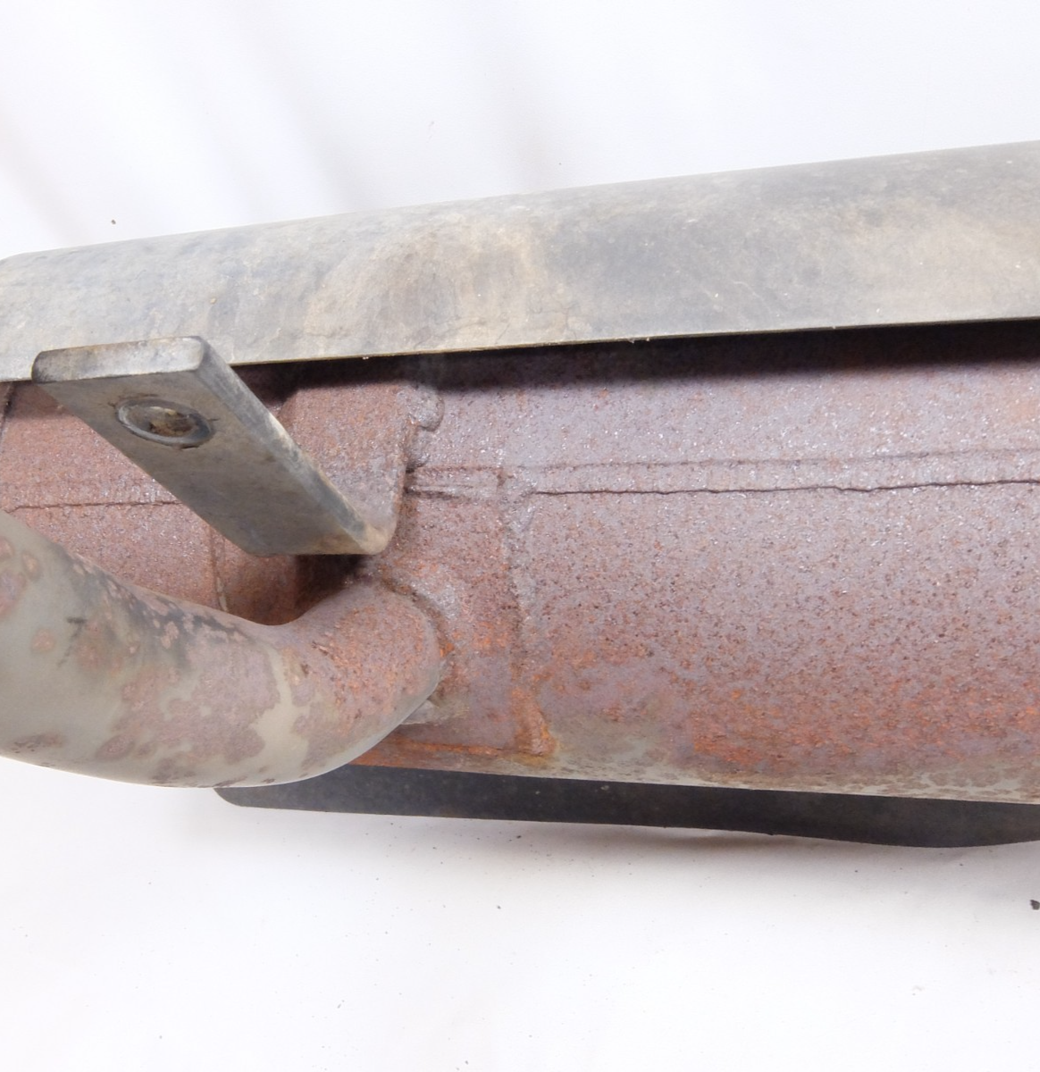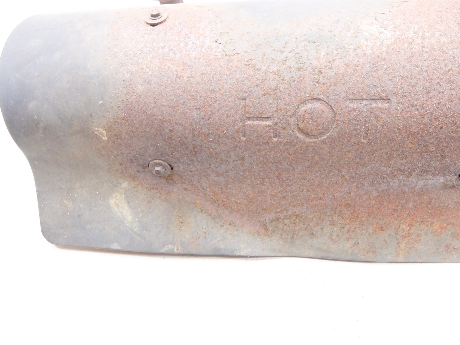 This is a used genuine muffler heat shield that was removed from the mower below. This is a Kohler muffler that was used on the mower below. The heat shield that is attached to it is a little bent and abit rusty. The muffler is in decent shape and does not rattle when you shake it.