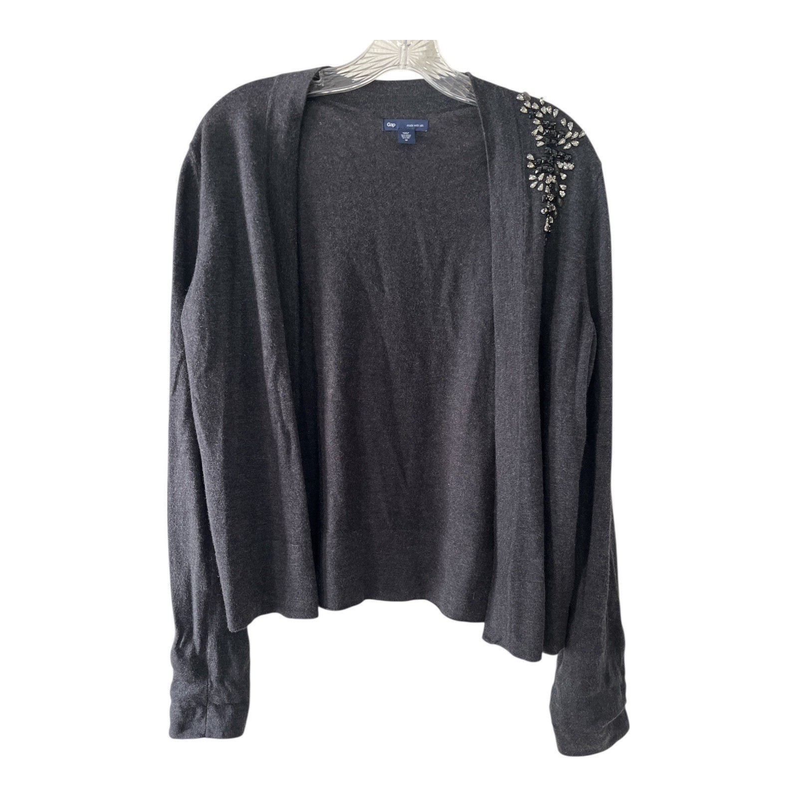GAP Women’s Embellished Shoulder Cardigan – Charcoal Gray Silk Blend – Size M