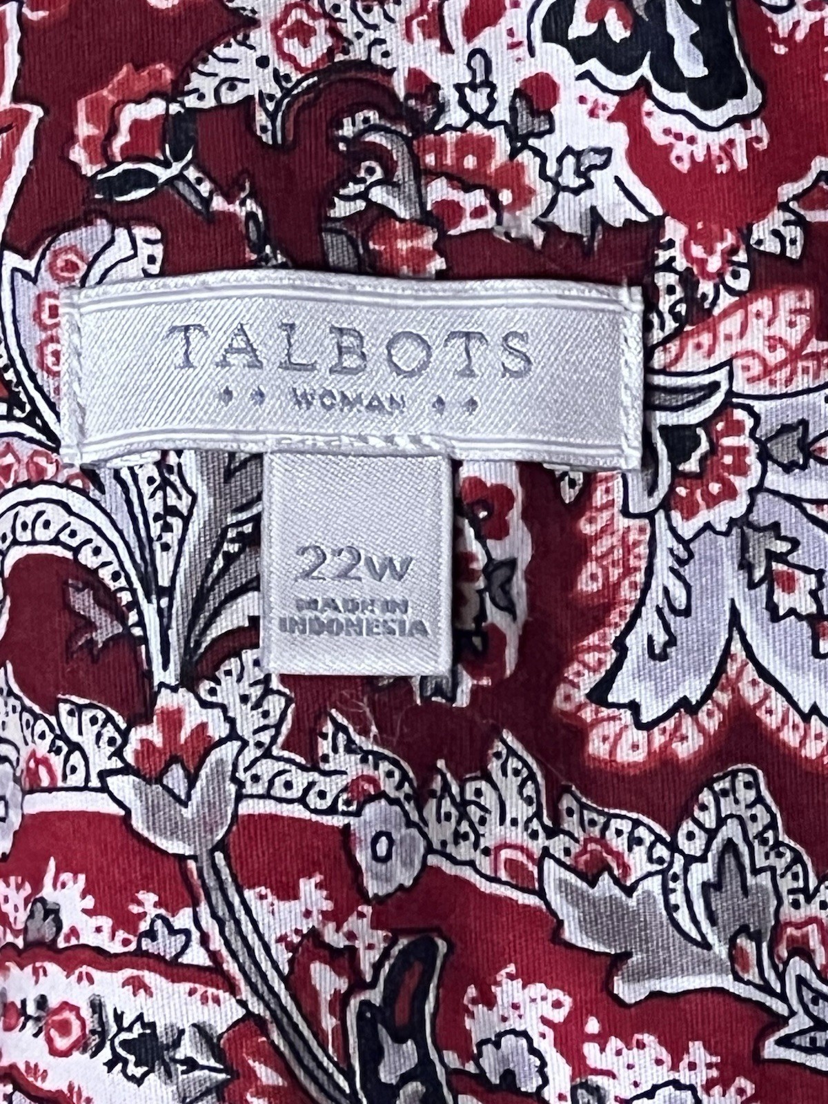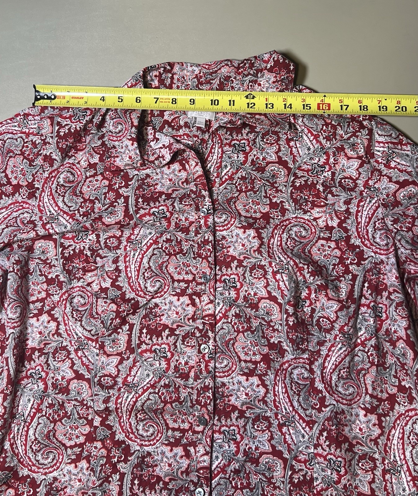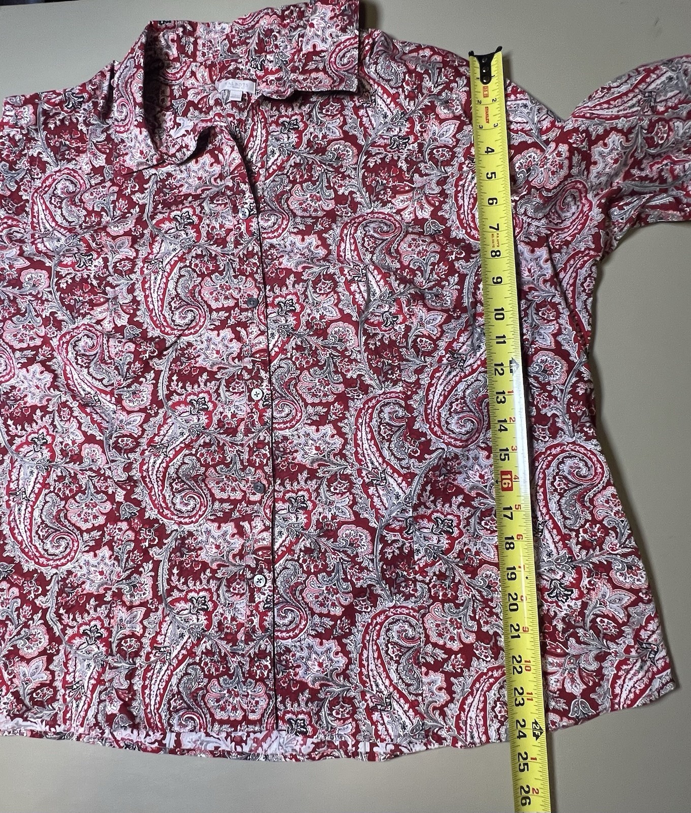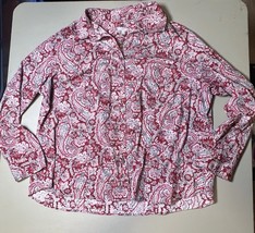 Talbots Woman Red Paisley Floral Long Sleeve Button Up Size 22W