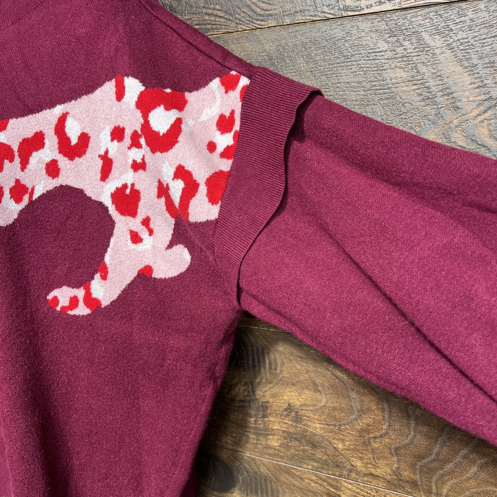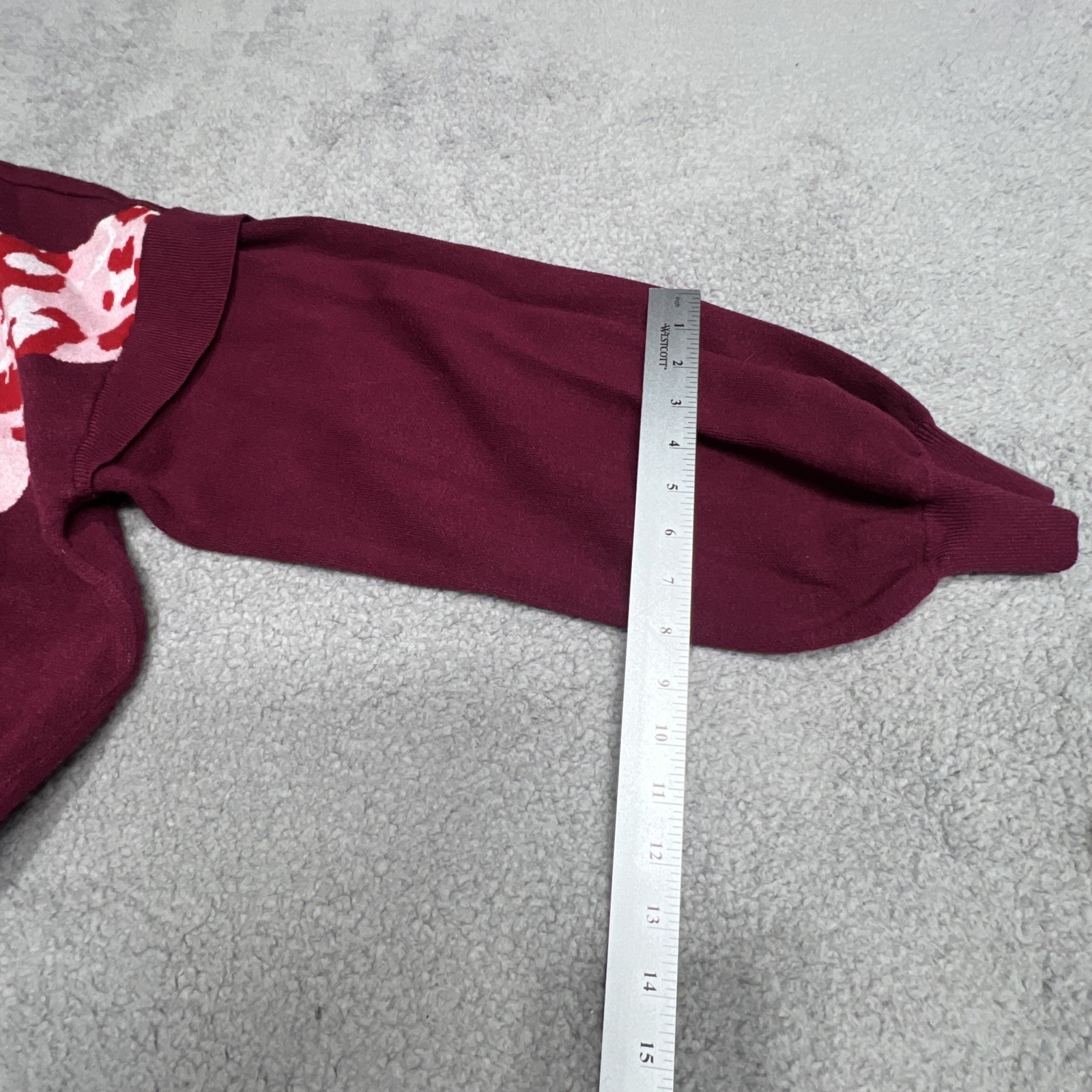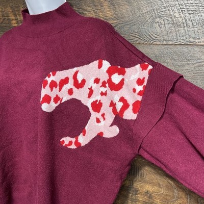 Crown & Ivy Sweater Women's XL Puff Long Sleeve Mock Neck Jacquard Cat Burgundy