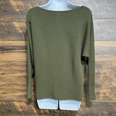 Vera Adams Dolman Sweater M Olive Green Ribbed Textured Knit Boat Neck Pullover