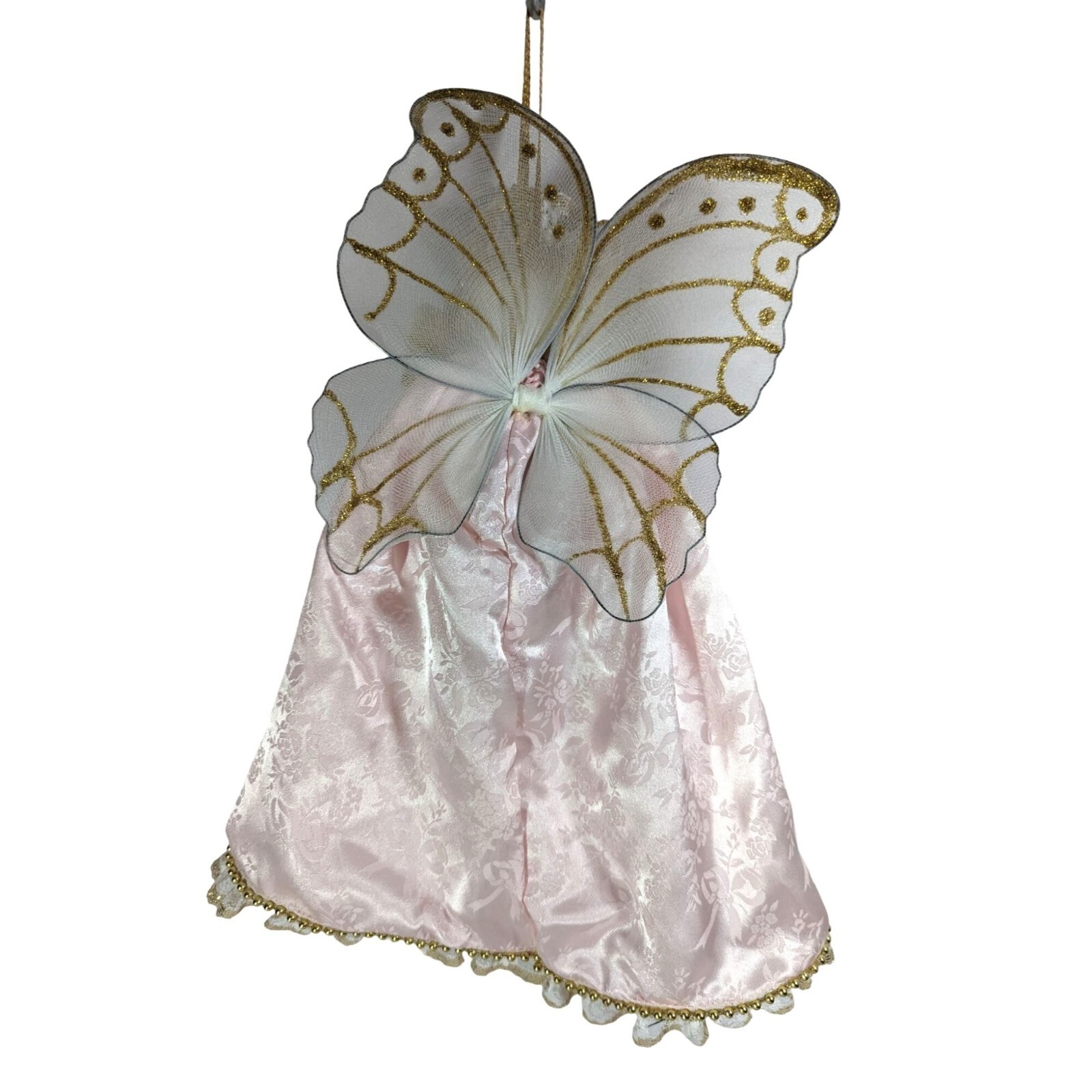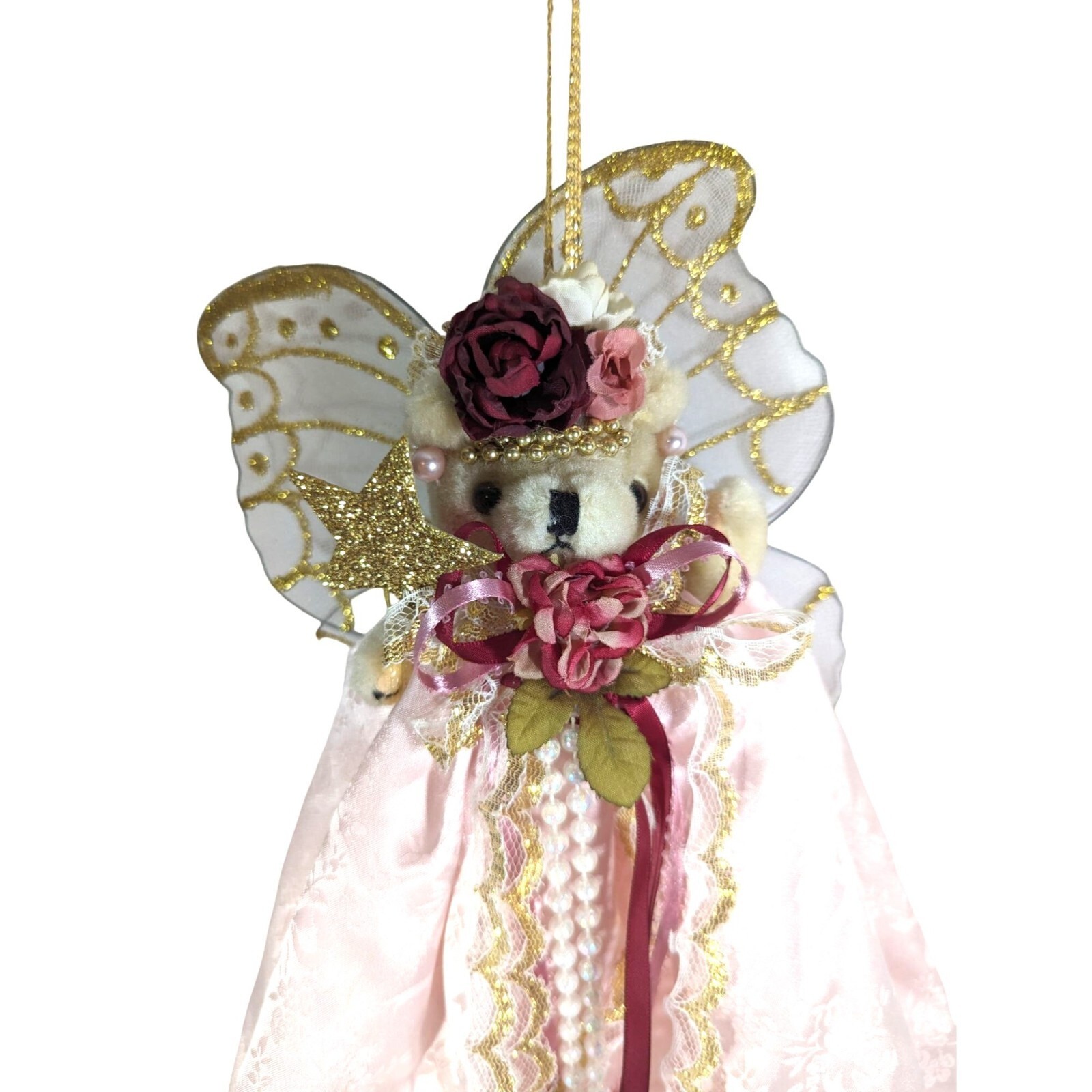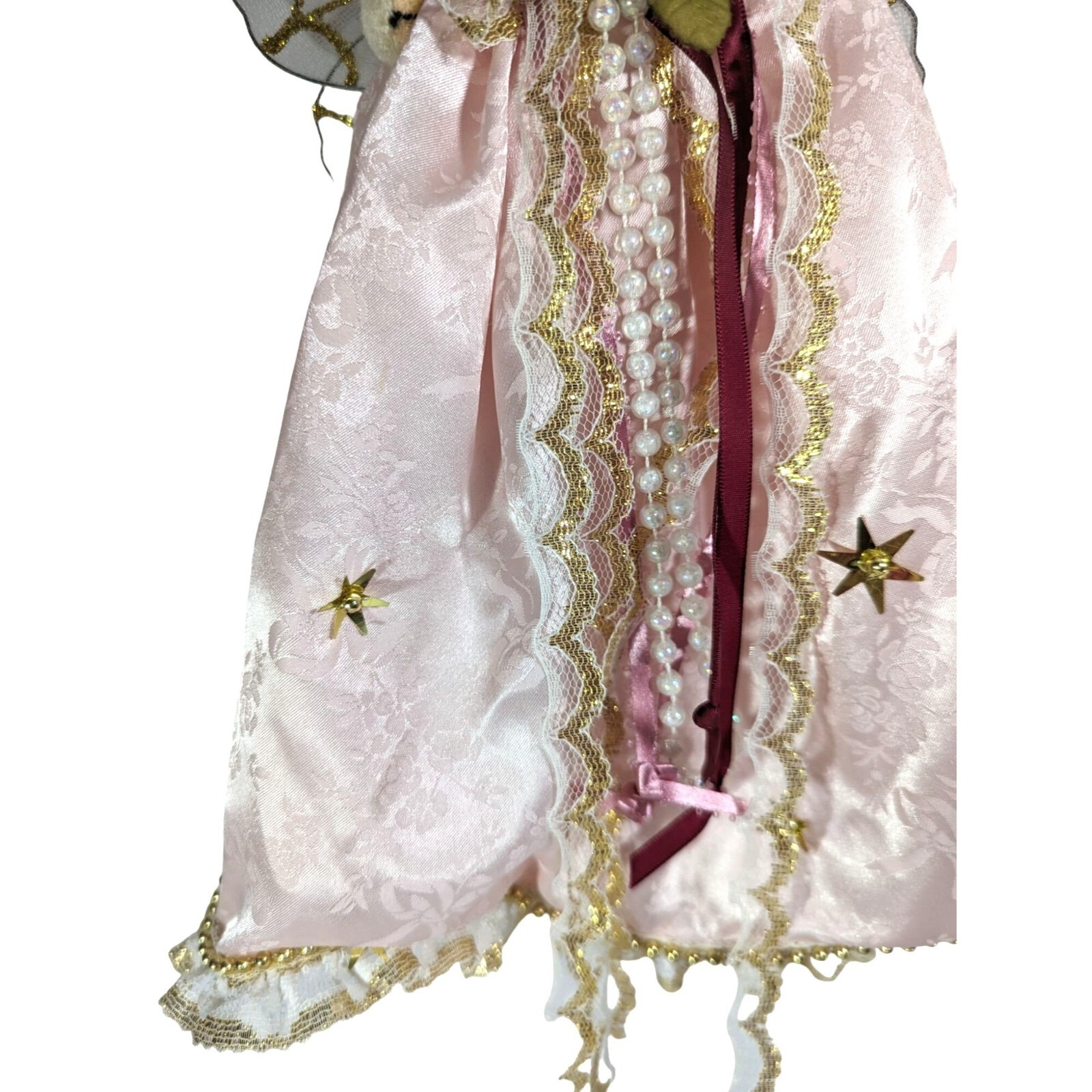 Angel Bear Princess Plush Ornament PInk Dress Wings Lace Faux Pearls Vintage 70s
