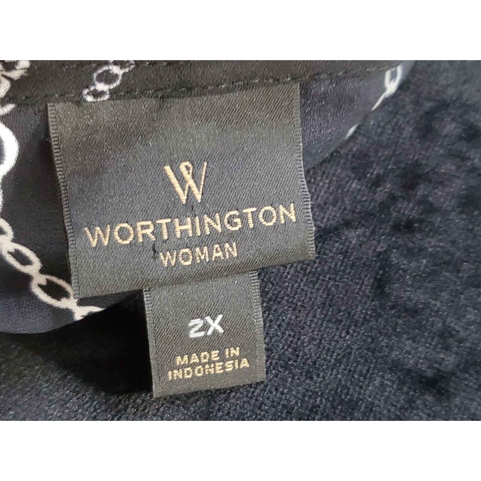 Worthington Women's Black Polyester Round Neck Short Sleeve Top Blouse Size 2X