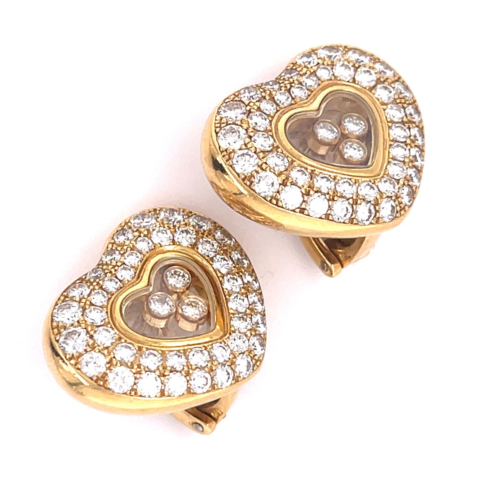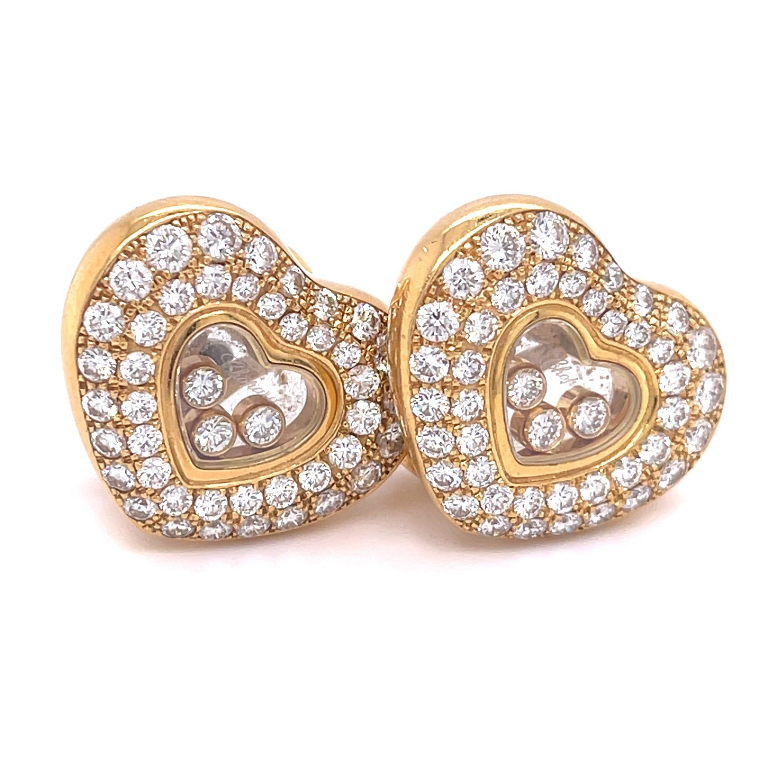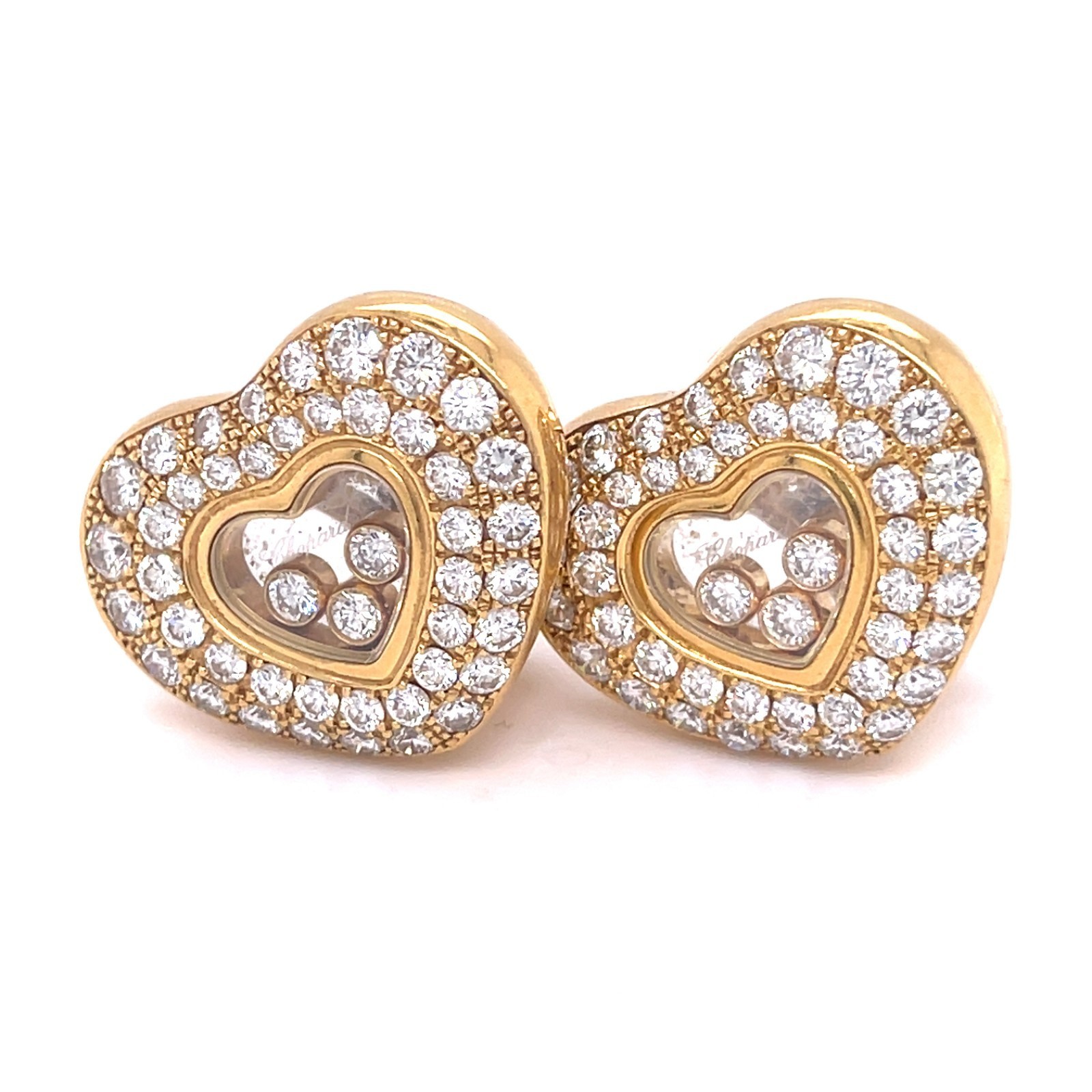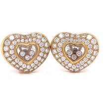 Beautiful Chopard 18k Gold 2.45ct "Happy Diamond" Heart-Shaped Earrings 19.2 grams