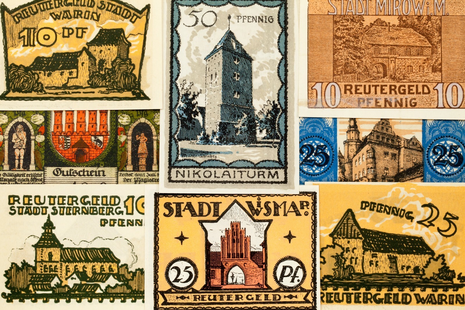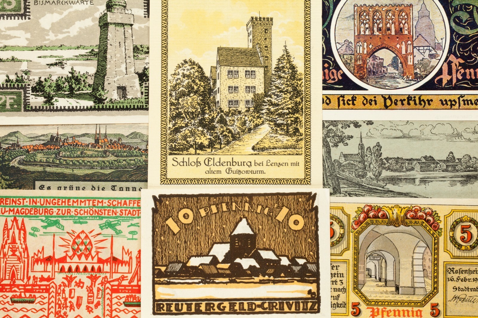 Issued by: Crivitz, Dels, Ellrich, Lenzen, Magdeburg, Malchin, Mirrow, Munster, Neustrelitz, Neustettin, Norenberg, Penzlin, Rosenheim, Sternberg, Tessin, Warin, Wismar, Zerbst