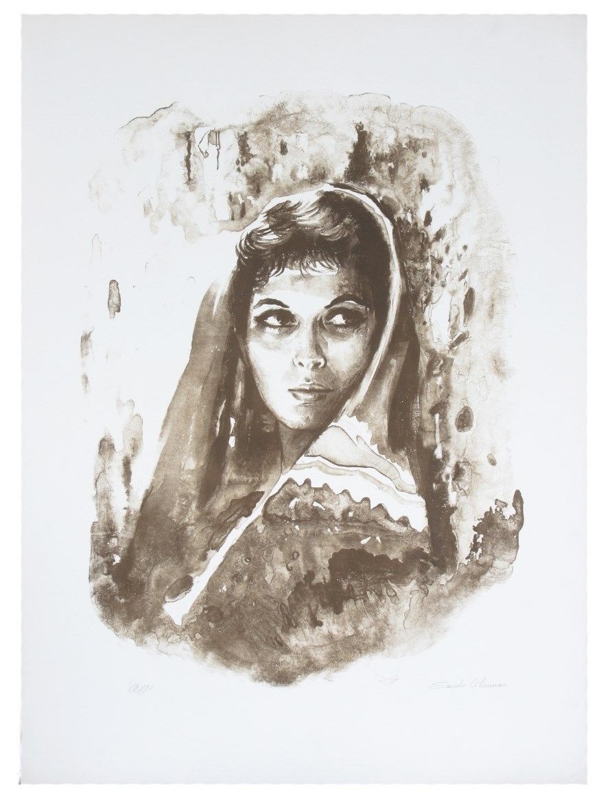 "PORTRAIT OF A WOMAN" BY SANDU LIBERMAN SIGNED SEPIA LITHOGRAPH AP CoA 30 X 22