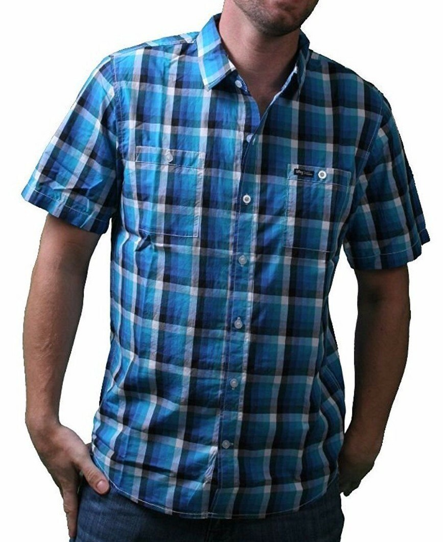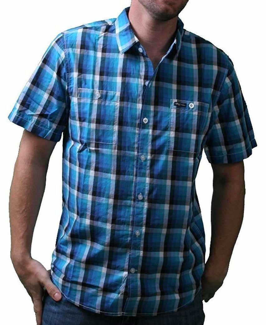 LRG Mens Interstate Short Sleeve Purple or Turquoise Woven Button Up Down Shirt