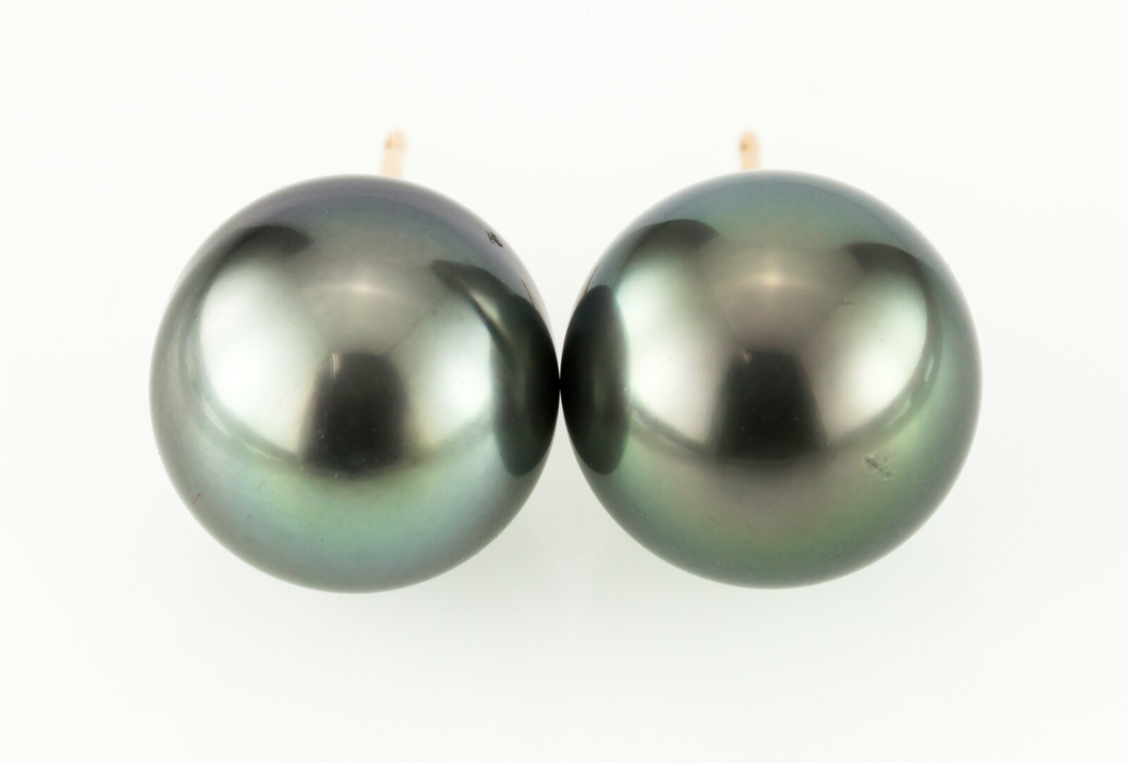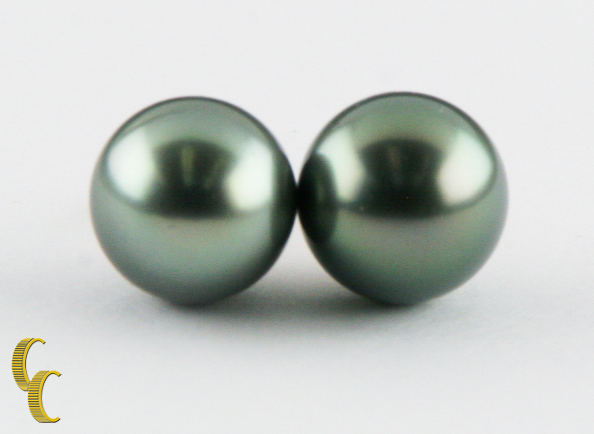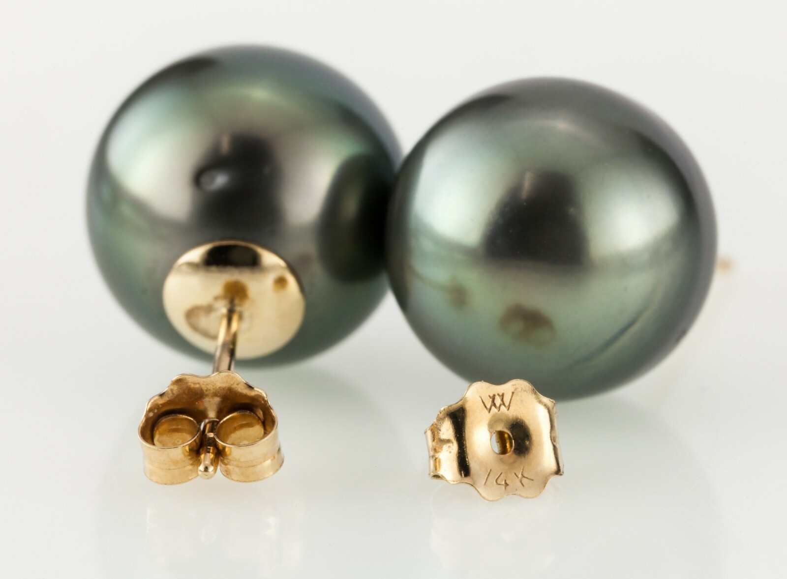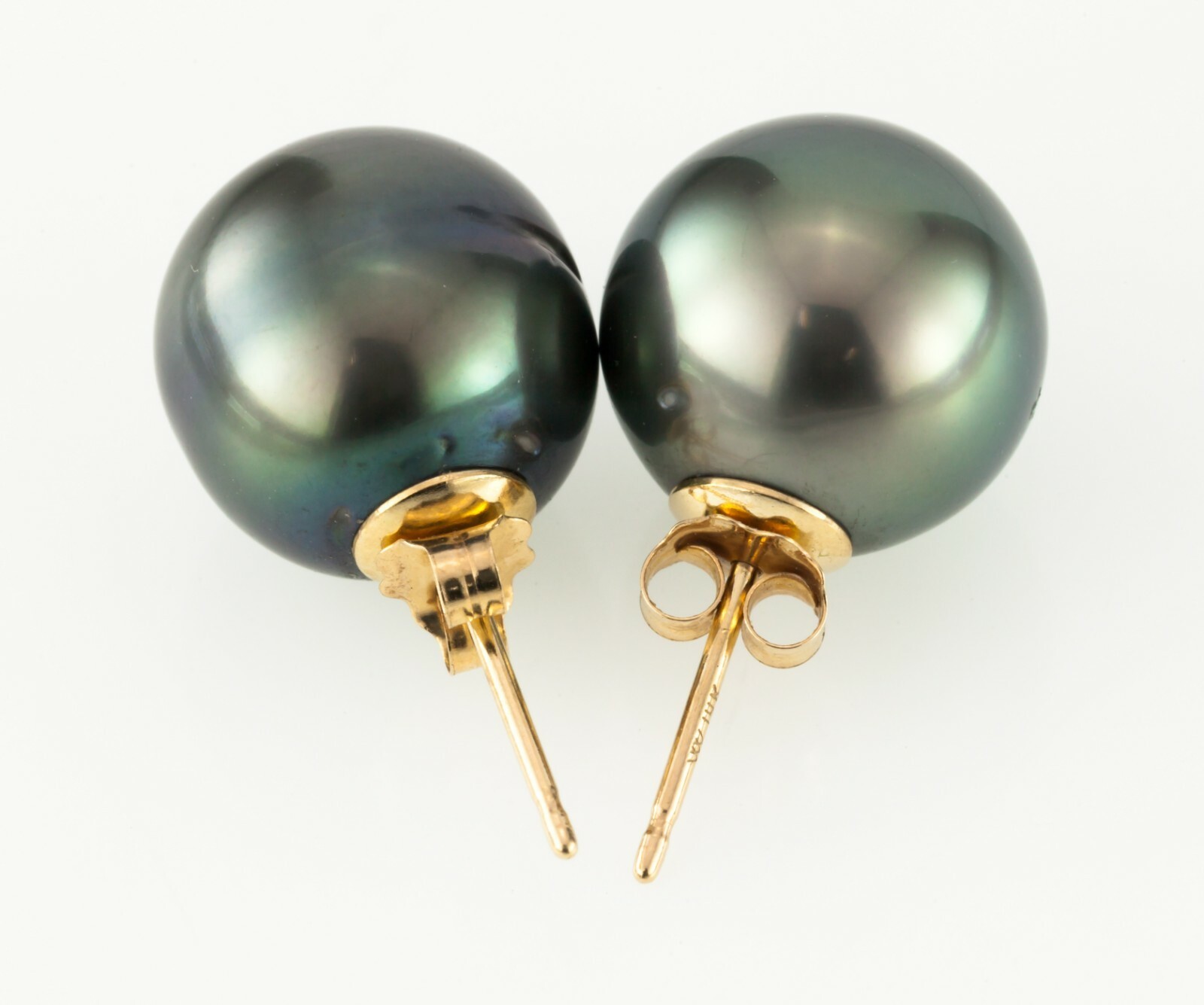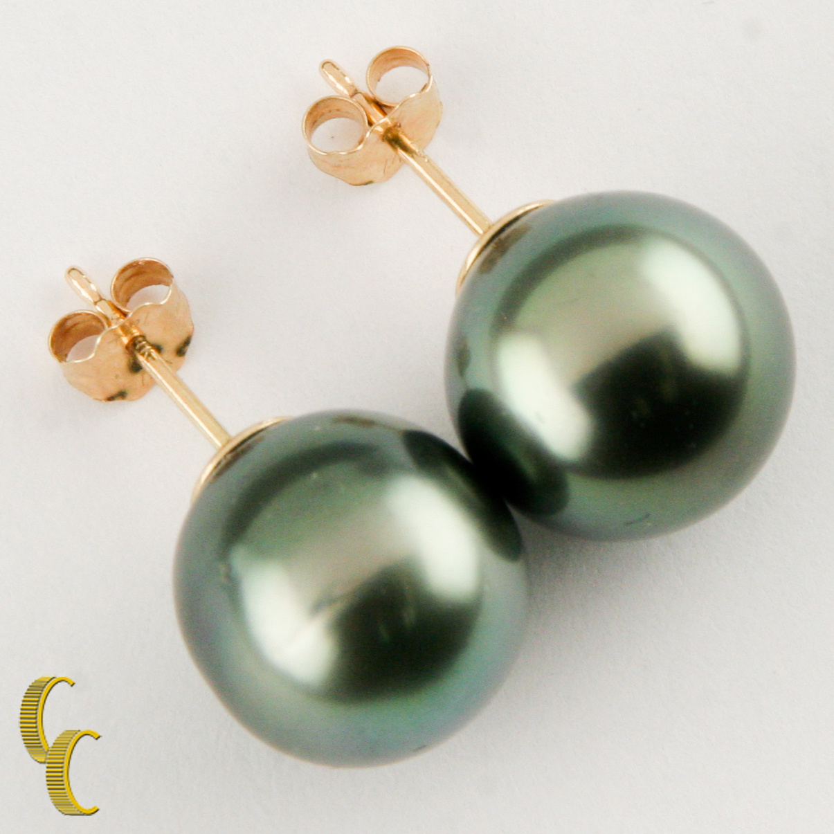 14k Yellow Gold 13 mm Tahitian Pearl Stud Earrings w/ Butterfly Backs