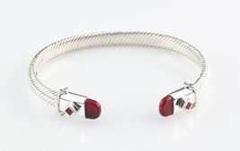 Sterling Silver Cable Cuff Bracelet Bloodstone Accents 7" Long 6 mm Wide 28.8 g