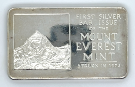 Obverse: Mountain View "FIRST SILVER BAR ISSUE OF THE MOUNT EVEREST MINT STRUCK IN 1973"