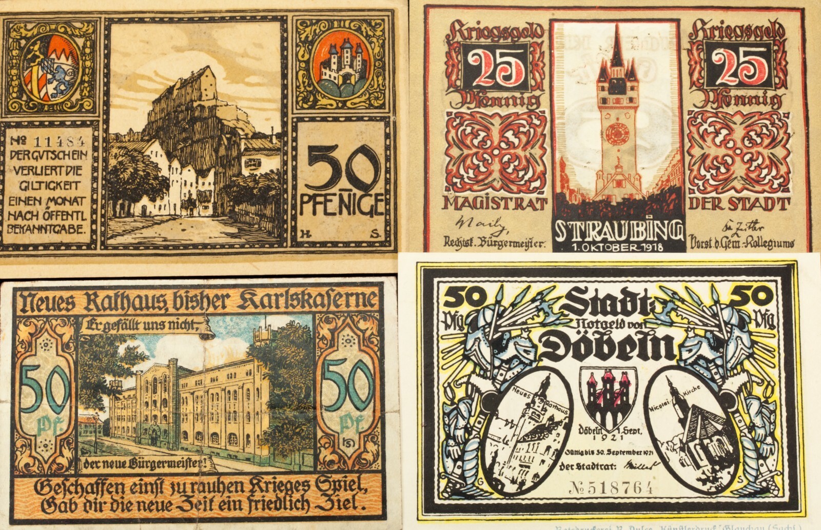 Issued by: Bad Kissingen, Bad Reichenhall, Berlin, Bernburg, Burghausen, Darmstadt, Dresden, Dobeln, Heiligenhaus, Kahla, Luckau, Markneukirchen, Melle, Naumburg, Neuhaus, Oberhof, Rudesheim, Stammbach, Stargard, Statlengsfeld, Straubing, Tichau, Vilshofen, Weiba, Wunsiedel