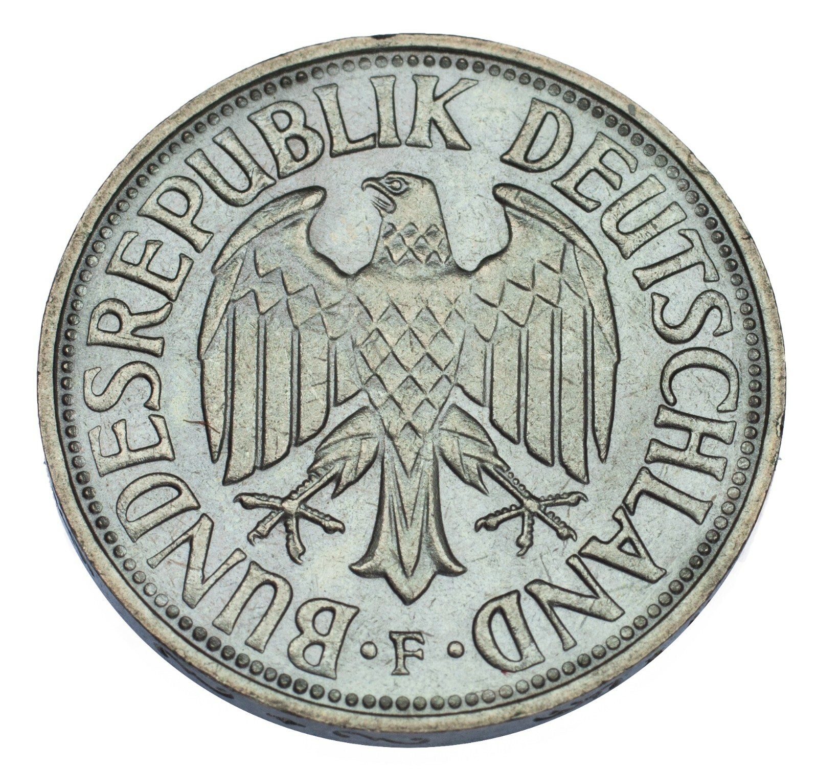 1968-F German 1 Mark Coin (BU Condition) Stuttgart Mint KM 110