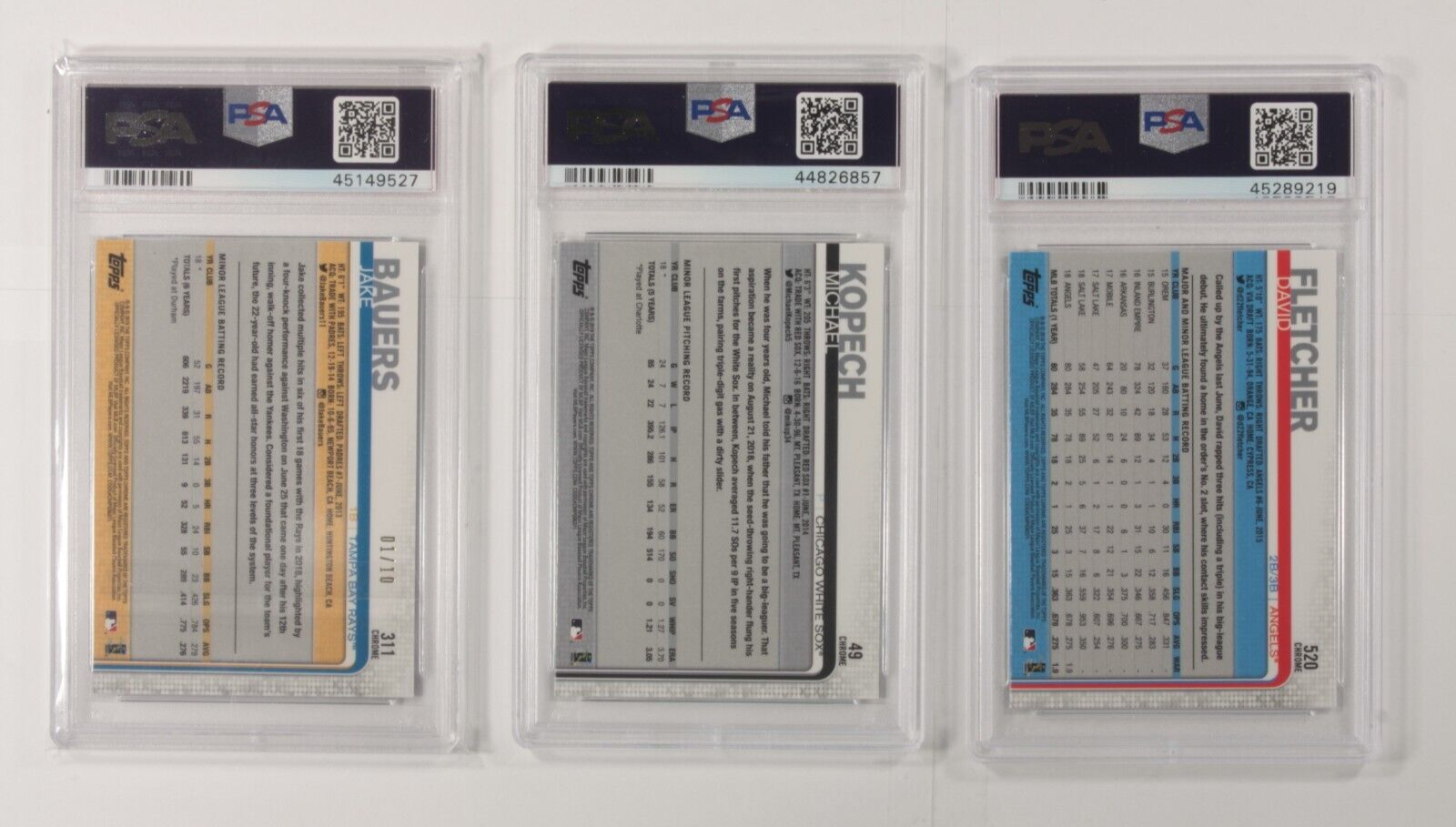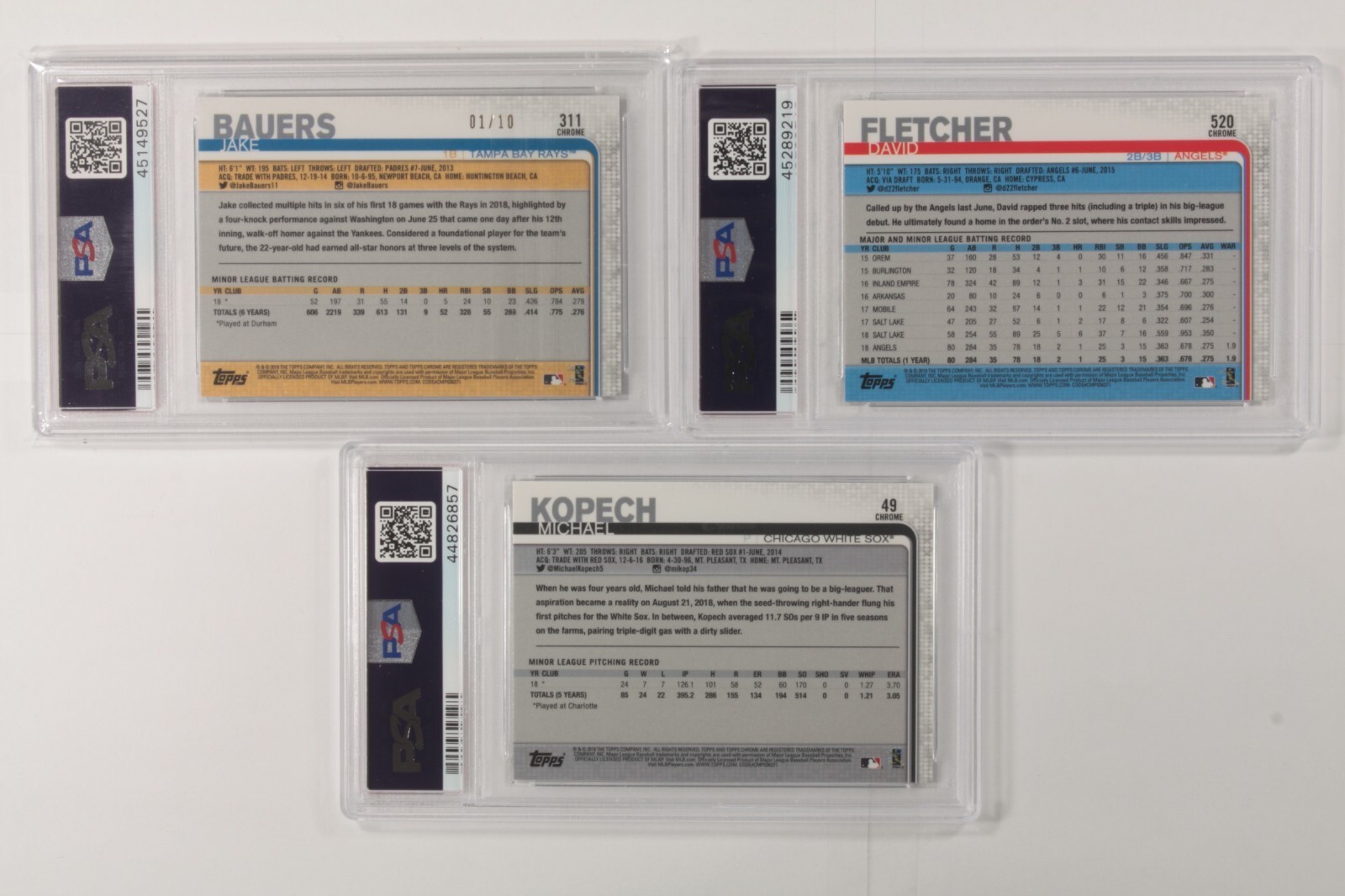 Lot Of 3 PSA Graded 2019 Topps Chrome Sapphire Edition Fletcher, Bauers, Kopech