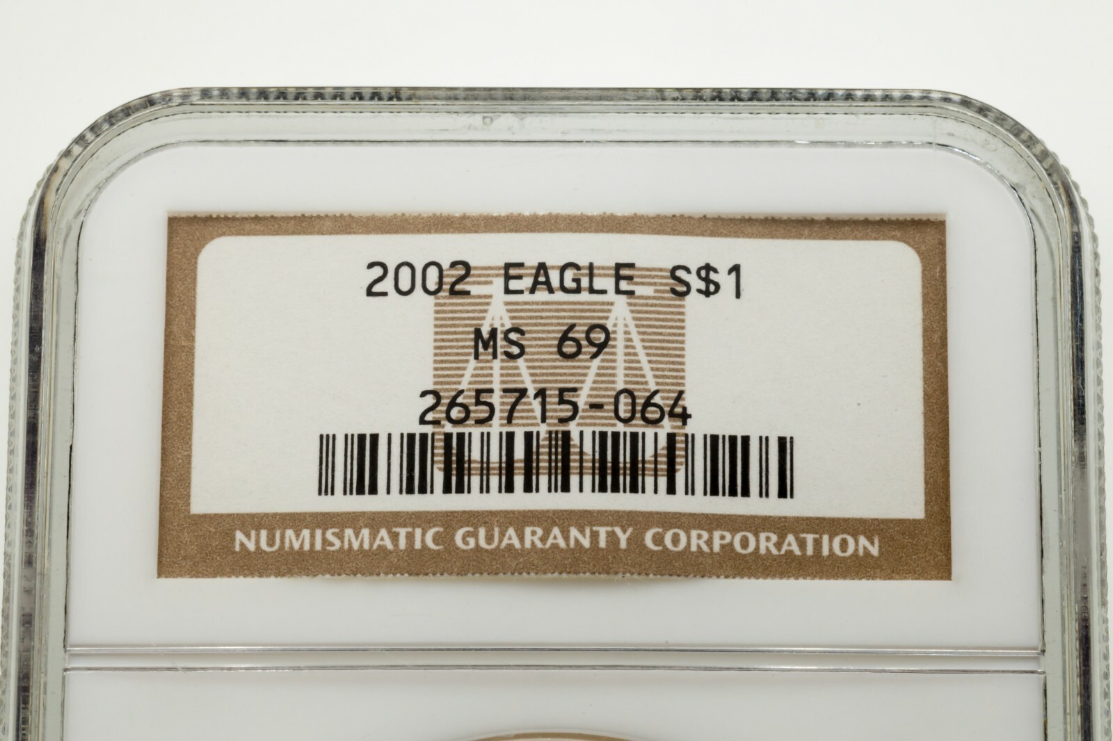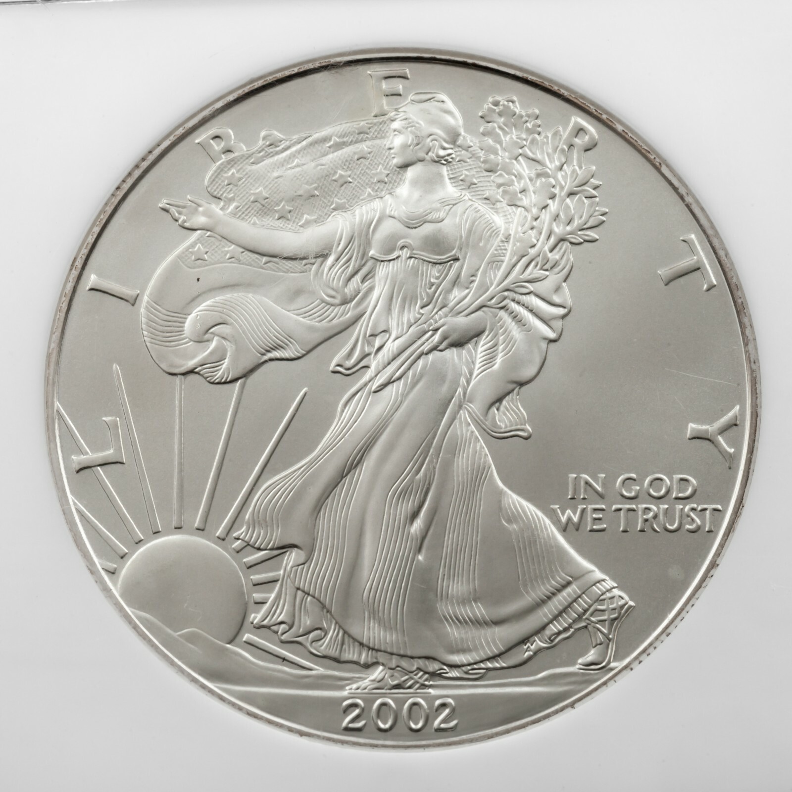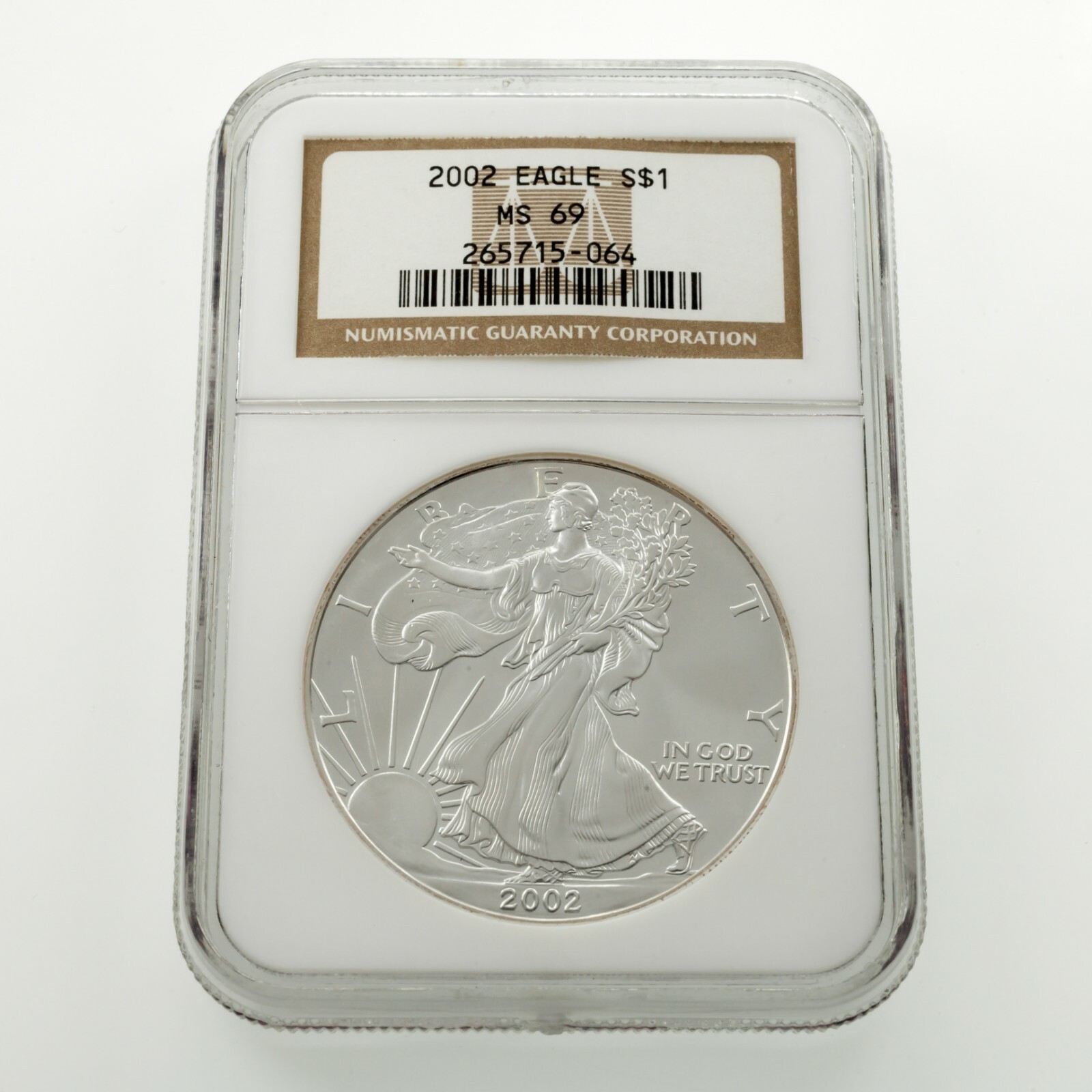 2002 Silver American Eagle Graded by NGC as MS-69, Bright White, No Spots