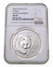 2003 Cina S10Y Panda D'Argento Frosted Bamboo NGC MS70 1 Oz.