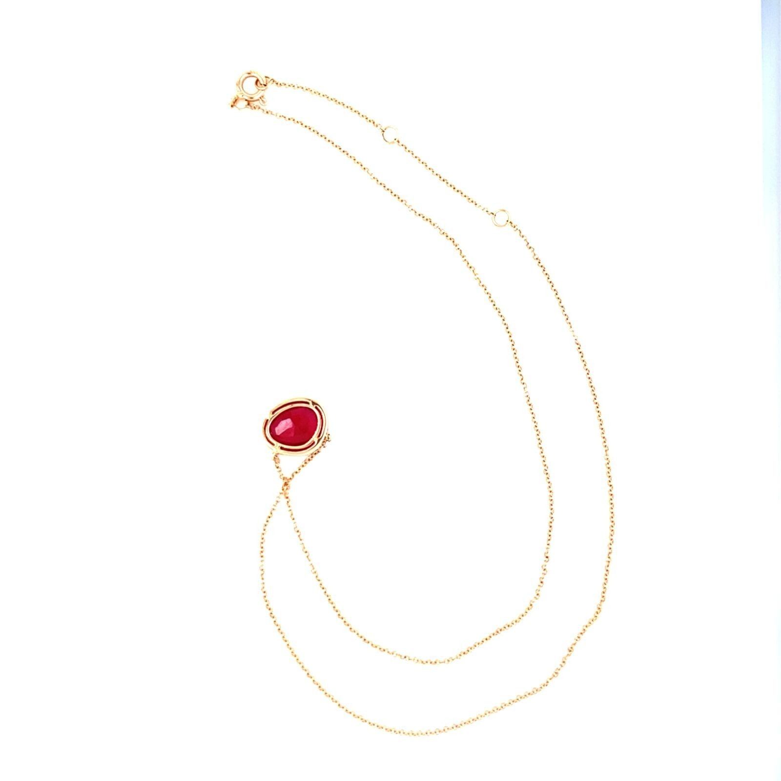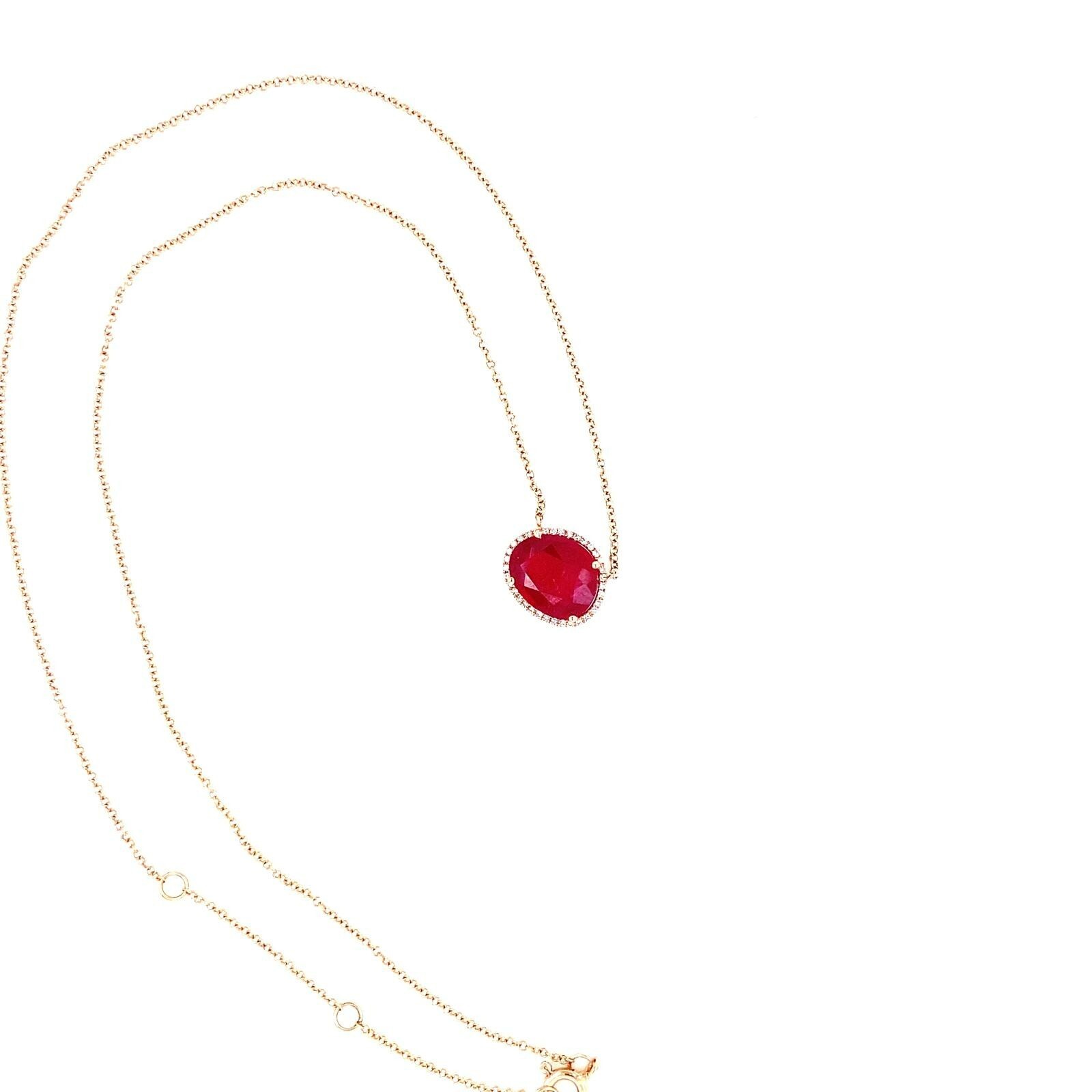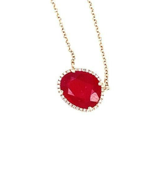 14k Rose Gold Beautiful Unique Asymmetrical Cut Ruby Pendant w/ Diamond 18"