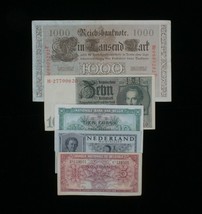 European Misc 5-Notes Lot // Belgium Francs, Germany Mark Netherlands Gulden