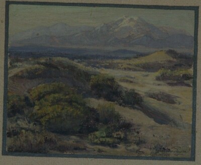 FRED GRAYSON SAYRE (1879-1939). A highly successful illustrator who later became one of California's best known desert landscape painters, Fred Grayson Sayre was born in Medoc, Missouri. His only formal art training was several months with portraitist J. Laurie Wallace in Omaha, Nebraska. Sayre first worked in lead and zinc mines and with leather goods and then determined to become an artist. He took an engraving job in Houston, Texas and then moved to Chicago where he earned distinction as an illustrator. A near fatal bout of diphtheria changed his life when doctors persuaded him to move to California. In 1916, he traveled by train through the Southwest and was enchanted by the desert landscapes. From 1919 through 1922, Fred lived and painted in Arizona, working also as a bookkeeper at night for a mining company. He returned to California in 1922 and settled ultimately in Glendale, thriving in the climate of the West. That same year, he held his first art exhibition in San Francisco. Fred Grayson Sayre was a charter member of the Painters and Sculptors Club of Los Angeles, serving as president in 1929. (Source:CalArt)
