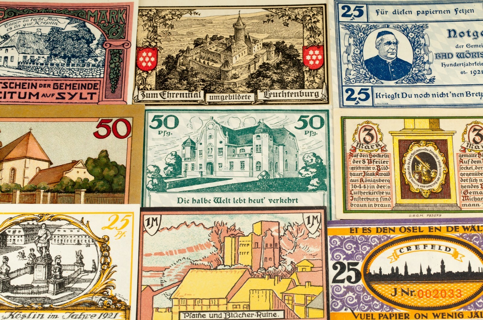 Notgeld (German for "emergency money" or "necessity money") refers to money issued by an institution in a time of economic or political crisis. The issuing institution is usually one without official sanction from the central government. This occurs when state-produced money is not available from the central bank. Issuing institutions could be a town's savings banks, municipality and private or state-owned firms.
