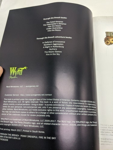 Wyrd Penny Dreadful Fire In The Sky Through The Breach RPG Book.