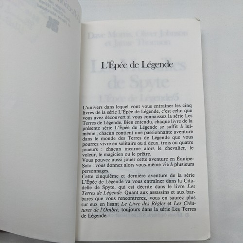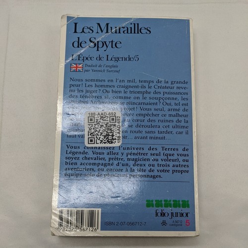 Vintage French Version The Walls Of Spyte Fighting fantasy RPG Game Book
