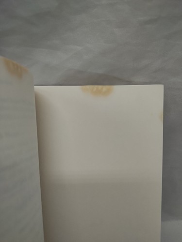 The front cover has a crease in the top right corner. Also, there's some browning on the pages, see pictures please.